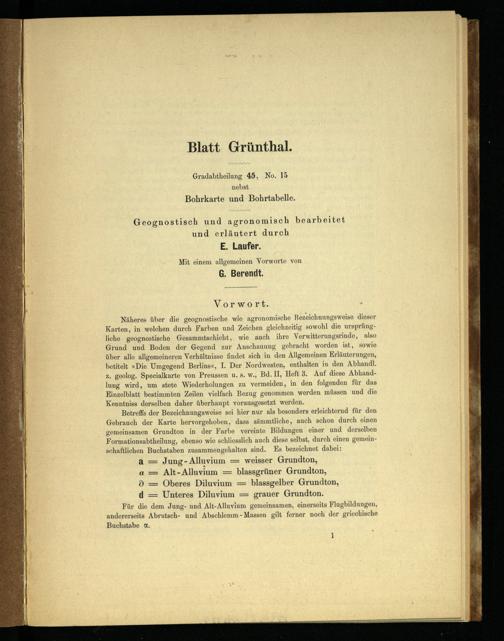 Näheres über die geognostische wie agronomische Bezeichnungsweise dieser Karten, in welchen durch Farben und Zeichen gleichzeitig sowohl die ursprüngliche geognostische Gesammtschicht, wie auch ihre Verwitterungsrinde, also Grund und. Boden der Gegend zur Anschauung gebracht worden ist, sowie über alle allgemeineren Verhältnisse findet sich in den Allgemeinen Erläuterungen, betitelt»Die. Umgegend Berlins«, I. Der Nordwesten, enthalten in den Abhandl. z. geolog. Specialkarte von Preussen u. s. w., Bd. IL, Heft 3. Auf diese Abhandlung wird, um stete Wiederholungen zu vermeiden, in den folgenden für das Einzelblatt bestimmten Zeilen vielfach Bezug genommen werden müssen und die Kenntniss derselben daher überhaupt vorausgesetzt werden.