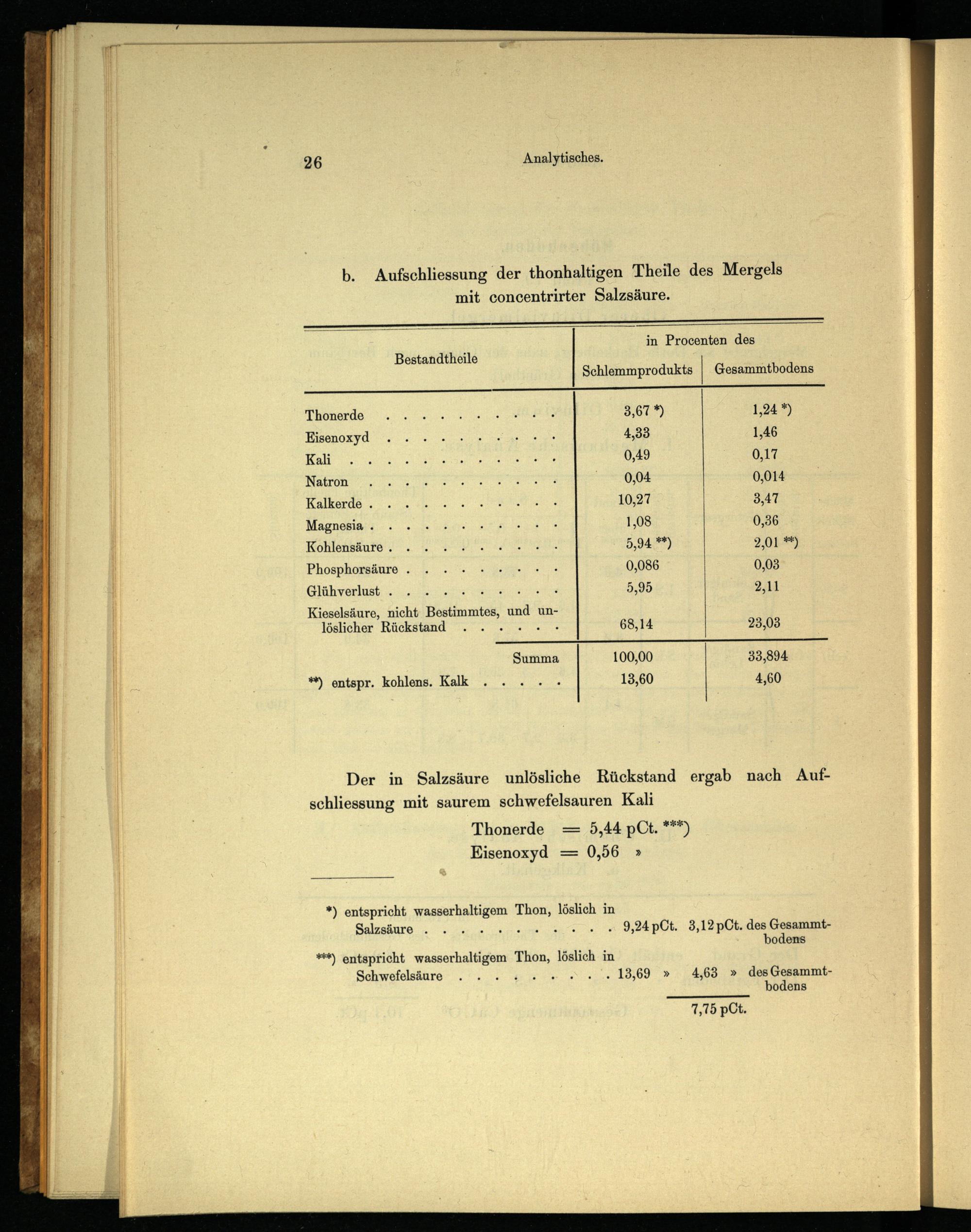 *) entspricht wasserhaltigem Thon, Salzsäure.
