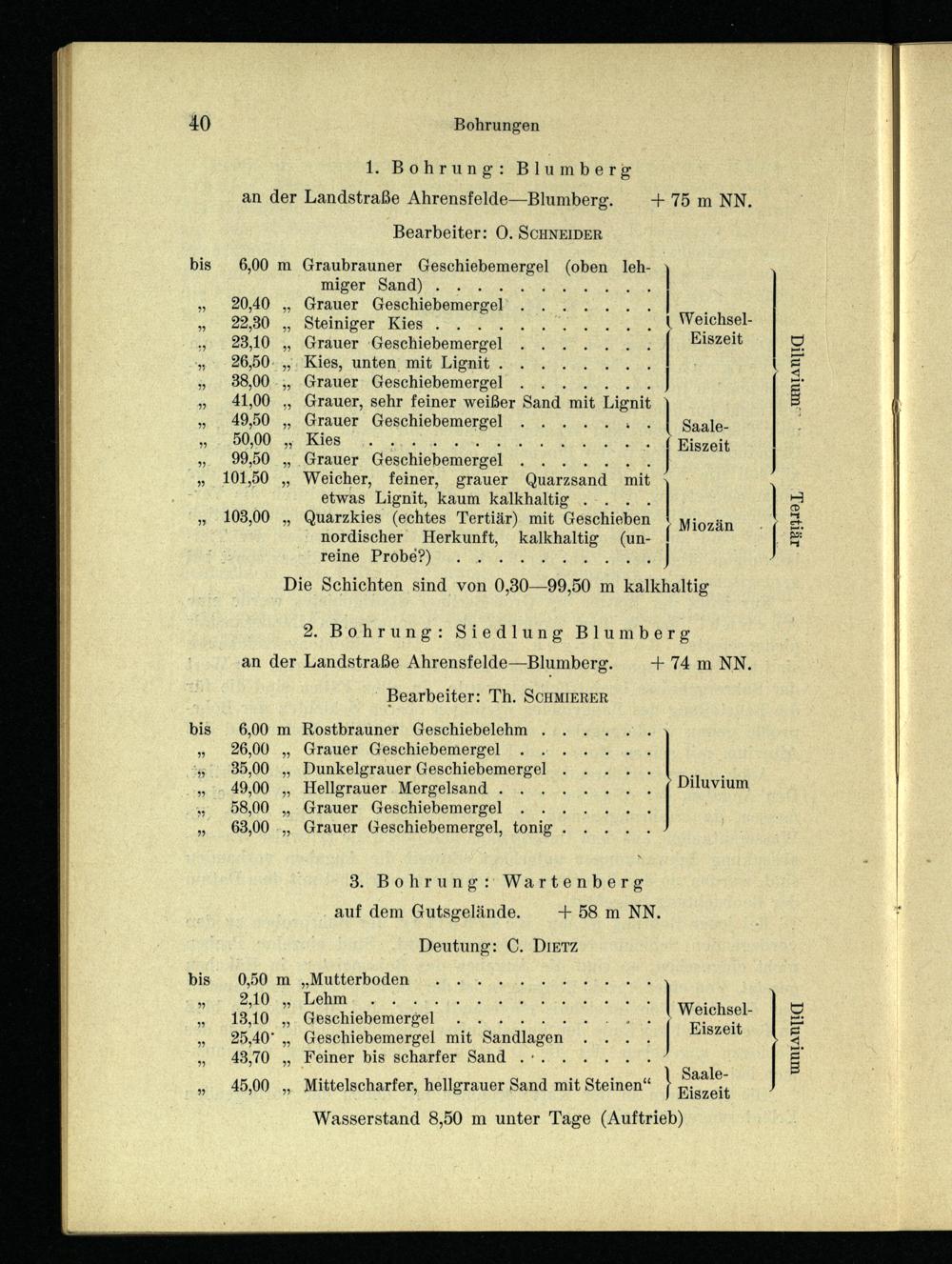 1. Bohrung: Blumberg an der Landstraße Ahrensfelde—Blumberg.+75 m NN.