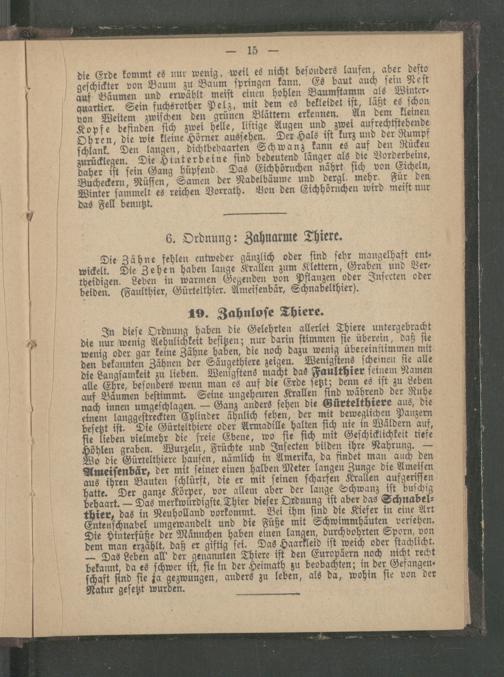 Die Zähne fehlen entweder gänzlich oder find ſehr mangelhaft entwickelt. Sie Zehen haben lange Krallen zum Klettern, Graben und Vertheidigen. Leben in warmen Gegenden von Pflanzen oder Inſecten oder beiden.(Faulthier, Gürtelthier. Ameiſenbär, Schnabelthier).