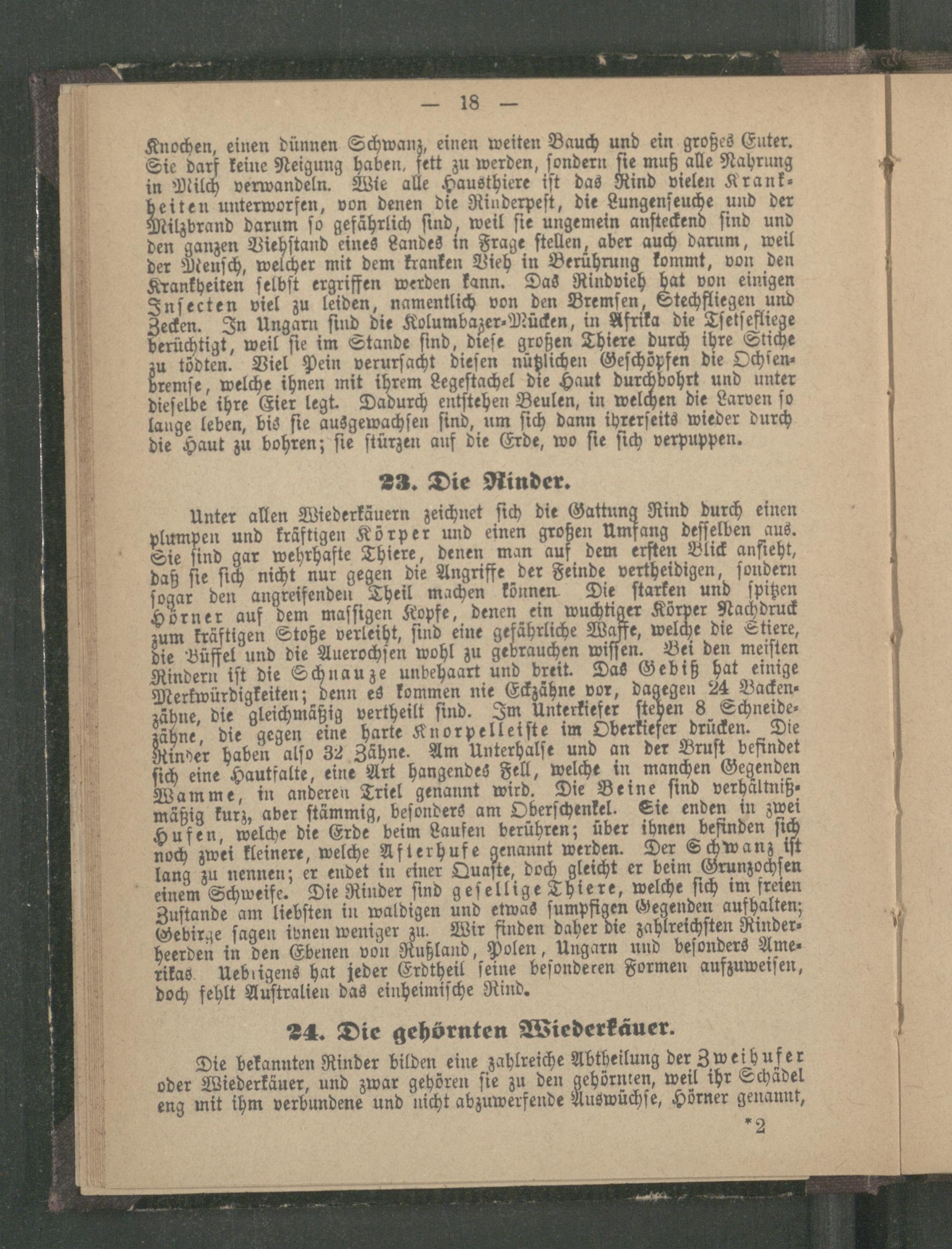 Die bekannten Rinder bilden eine zahlreiche Abtheilung der Zweihufer oder Wiederkäuer, und zwar gehören fie zu den gehörnten, weil ihr Schädel eng mit ihm verbundene und nicht abzuwerfende Äuswüchſe, Hörner genannt,