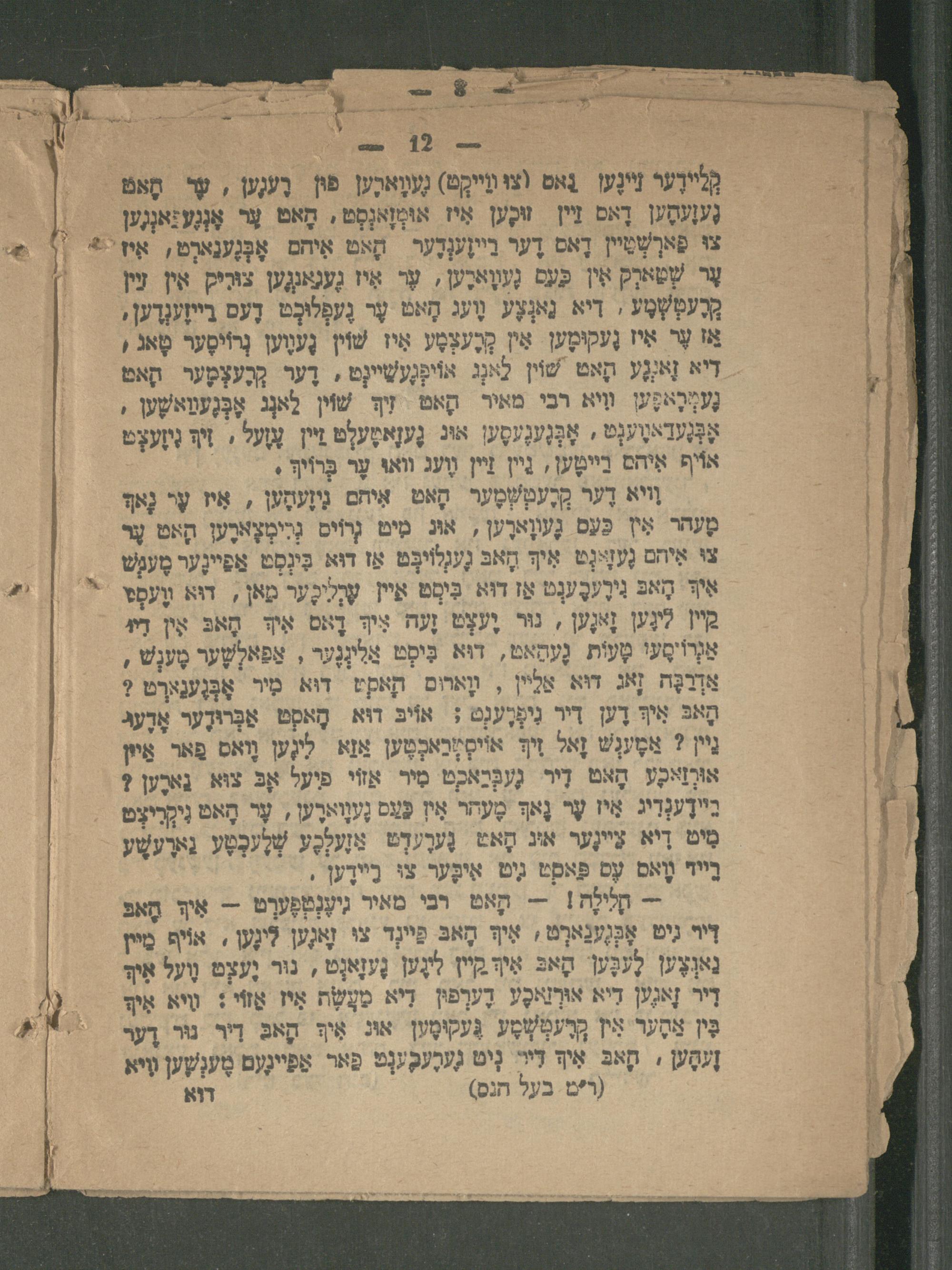 = תְלֹלָת!= ָאט רבי מאיר גִעֶנְטְפֶערְט-- אִיך הָאפּ די גיט אָפֶּענַארְט, אִיךּ הָאבּ פַיינד צו זָאנֶען לִינֶען, אוֹיף מַיין נאְצֶען לֶעבֶּען הָאכּ אִיקיין לינֶען גֶעזַאְט, נור וֶעצְט על א דַי זָגֶען דיא אורזַאכֶע דֶערְפן דִיא מעֶָׂת אִי אַזֹ 1 ויא אי בִּין אַקֶער אִין קְרֶעמְשְסֶע גֶּעקוּמֶען אוג אִיךְ הָאבּ דַי ור דֶער זֶעמֶען. חָאבּ אִיף דיי נִיט גֶערֶעבֶענְט פאר אַפֵיינֶעם מֶענְשֶׁען ויא