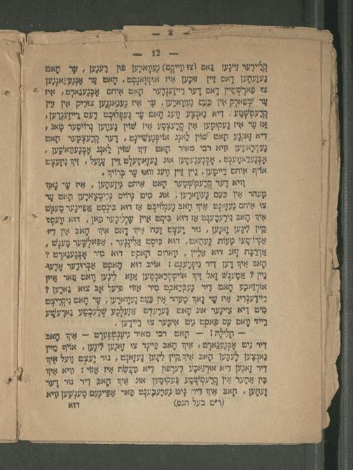 ויא דֶער קָרֶעטְשְׁטֶער. הָאט. אִיחם גִיזֶעמֶען, אִיז עָר נָאף מֶעהר אִין כַּעם גֶעוָארֶען, אוּג מִיט נָרוֹים גְרִימְצָארֶען הָאט עֶר צוּ איחם גֶעזִינְט אִיךְ הָאבּ גֶעגְלוֹיבְּט אַז דוא בִּינְסְט אַפַיינֶער מֶעבְשׁ אי הָאבּ גִירֶעבֶענְט אַז דוא. בִּימְט אֵיין עֶרְליכֶער מאן, דוא ווֶעסְט מיין לנען זָאנֶען, נור וֶעצְט זָעה צִיך דָאס אי הָאכּ אִין דָי אַנְרוֹסָעוֹ טָעוֹת גֶעהַאט, דוא בִּיסְט אֲלִינְגֶער, אַפַאלְשֶׁער מֶענְשׁ, אַדְרַבָּה זָאג דוא אַלַיין װָאחם קָאקט דוּא מִיר אָבְּגֶענַארְט? הָאבּ אִיךְּ דֶען דיר נִיפְרֶעגְט: אוֹיבּ דוא הָאסְט אַבְּרוּדֶער אָרֶעגּ ניין? אַטֶענְשׁ זָאל זִיךְ אויסְעְרַאכְטֶען אזא לינֶען וָואס פַאר אֵיין אוּרזַאכֶע הָאט דִיר גֶעבְּרַאכְט מִיר אַזוֹי פיעל אָבּ צוּא גַארֶען? יידֶענְדַיג אִיז ער נָאךְ מֶעחֵר אִין כּעס גֶעוָוארֶען, עַ הָאט נִיקְרִיצֶט מִיט רִיא. צֵיינֶער איג חָאט. גֶערֶערְט פַזֶעלְכֶע שְׁלֶעכְטֶע גַארעשָׁע רֵייד מָאס עֶס פּאקט גיט אִיבֶּער צוּ בֵיידֶען,
