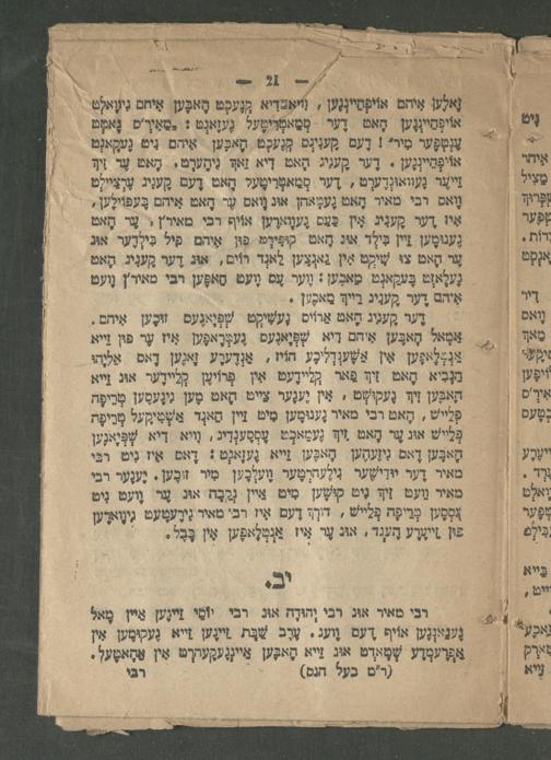 ָאלֶען איהם אוֹיפְטיְֶען,(יאבדיא הְנֶעכְט הָאבֶּען. אֵיחם גִיוָאלְט אוֹיפְחַינְנֶען הָאט. דֶער- טְטַאמְרִיטֶעל גֶעזָאנְט+ נסאֲי'ם גָּאמְט עֶנְטְפֶּער מֵירי 1 דֶעם קֶענִיגְס קָנֶעכְט חָאבֶּען' אֵיהם נִיט גֶעקָאנְט אוֹיפְּהַיינְגֶען. דֶער קֶענִיג הָאט דִיא זַאךְּ נִיהֶערְט.. הָאט עֶר זיךָּ זיעֶר גֶעוואוּנְדֶערְט, דֶער סְמַאמְרִיטֶעל הָאט דֶעם קֶענִי עֶרְצֵיילְט וָואס רבי מאיר הָאט גֶעמָאהן אוּג וָואס עָר הָאט אֵיהם בֶּעפּוֹילֶען, אִיז דער קֶענִיג אִין כַּעַס גֶעמָארֶען אוֹיף רבי. מאיר'' ער הָאט גֶענוּמֶען זַיין בִּילֶר אוּג הָאט קוּפִּירֶ פּוּוּ אָיהם פֵיל בִּילְרֶער אוּגֿ עֶר הָאט צוּ שִׁיקְט אִין. גנְצֶען לַאנְד רּוֹים, אוּג דֶער קֶענִיג הָאט גֶעלָאזְט בֶּעקַאנְט מַאבֶען: וֶוער עֶס וֶועט חַאפֶּען רבי מאיר'ן וֶועט אֶיהט דֶער קֶענִיג רייך מאכֶען.