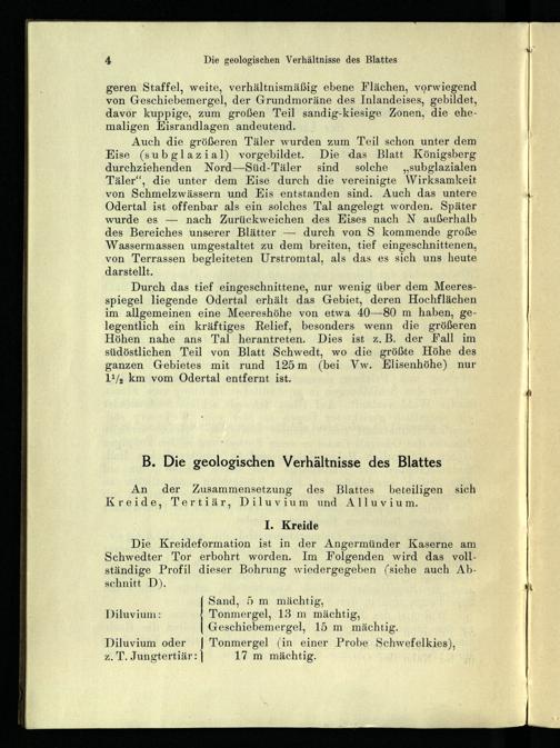 Die Kreideformation ist in der Angermünder Kaserne am Schwedter Tor erbohrt worden. Im Folgenden wird das vollständige Profil dieser Bohrung wiedergegeben(siehe auch Abschnitt D).