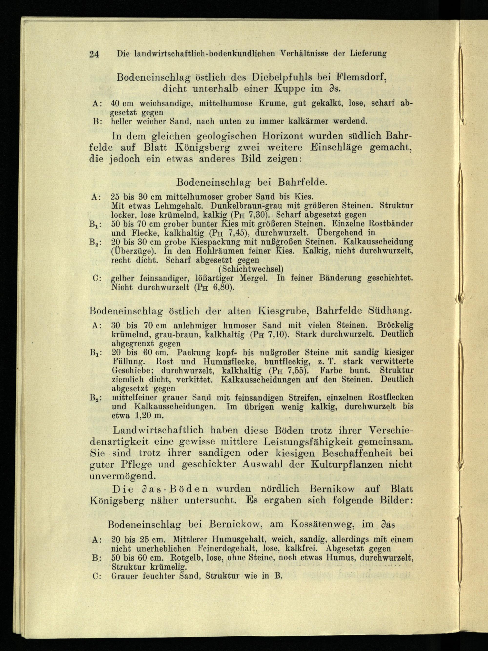 In dem gleichen geologischen Horizont wurden südlich Bahrfelde auf Blatt Königsberg zwei weitere HEinschläge gemacht, die jedoch ein etwas anderes Bild zeigen: