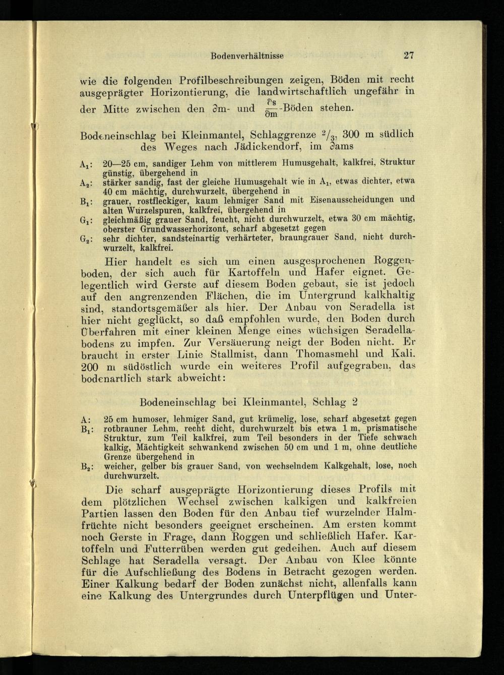 wie die folgenden Profilbeschreibungen zeigen, Böden mit recht ausgeprägter Horizontierung, die landwirtschaftlich ungefähr in < Böden stehen.
