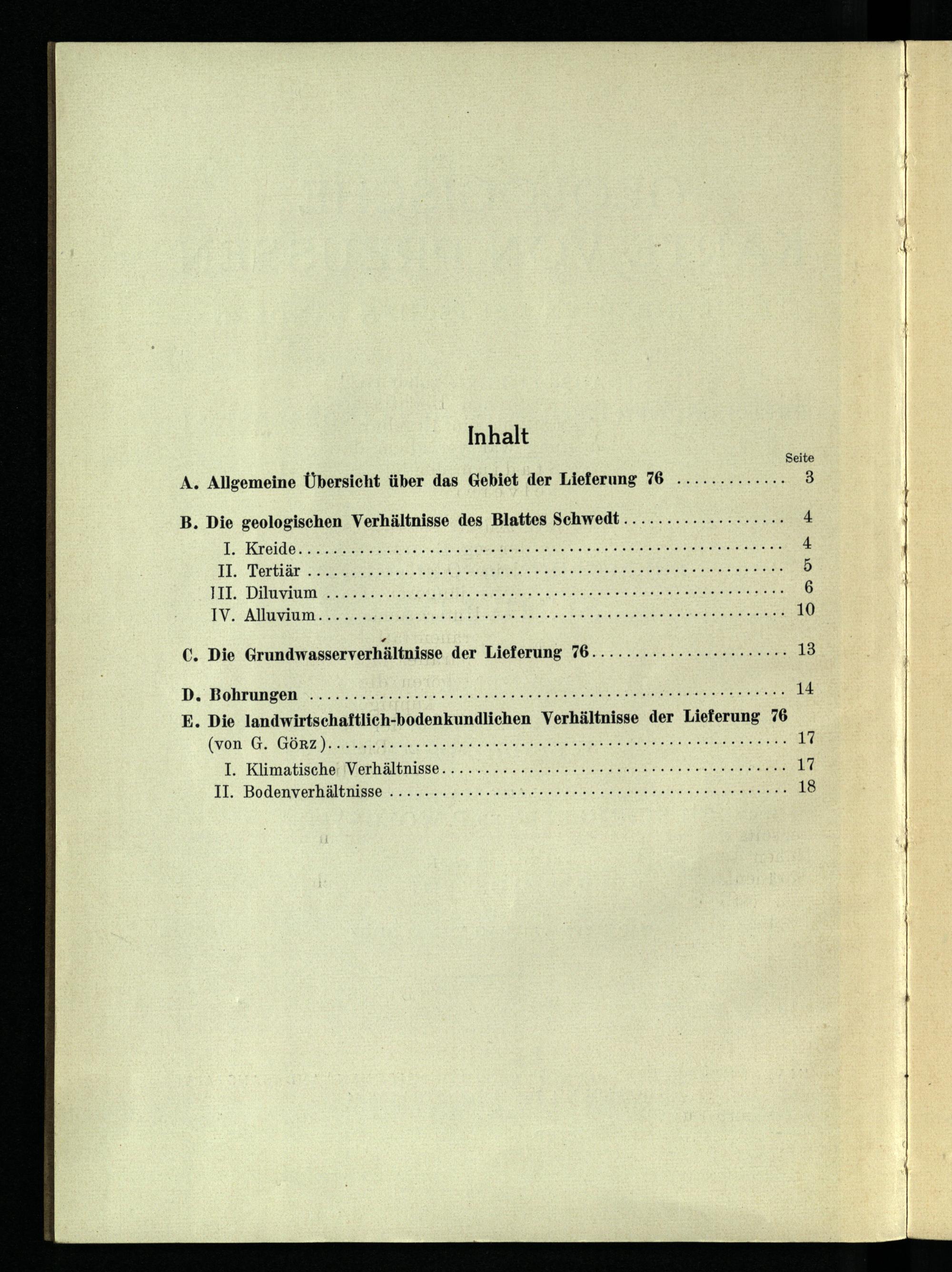 D. Bohrungen.............0..000rerrrenetre nenn ARENA Rn En HN HEN 14 E. Die landwirtschaftlich-bodenkundlichen Verhältnisse der Lieferung 76