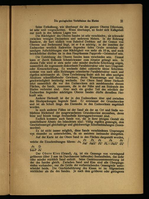 In noch anderen Fällen ist der Sand als der an Ort und Stelle verbliebene Rückstand der ausgewaschenen Grundmoräne anzusehen, deren feine und feinste tonige Bestandteile hinweggeschwemmt. sind.