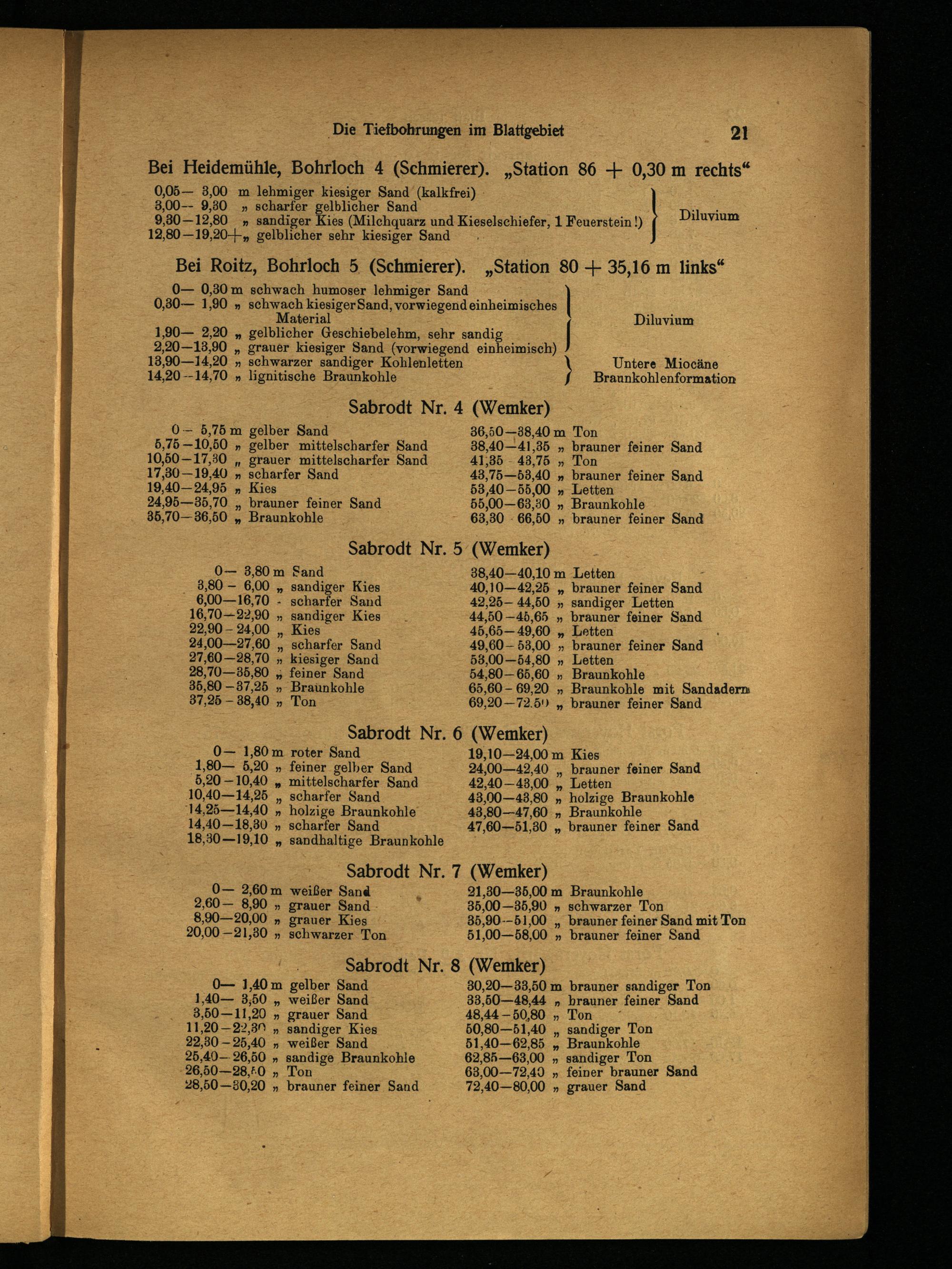 11,20—22,30„ sandiger Kies 50,80—51,40„ sandiger Ton 22,80— 25,40„ weißer Sand 51,40—62,85„ Braunkohle