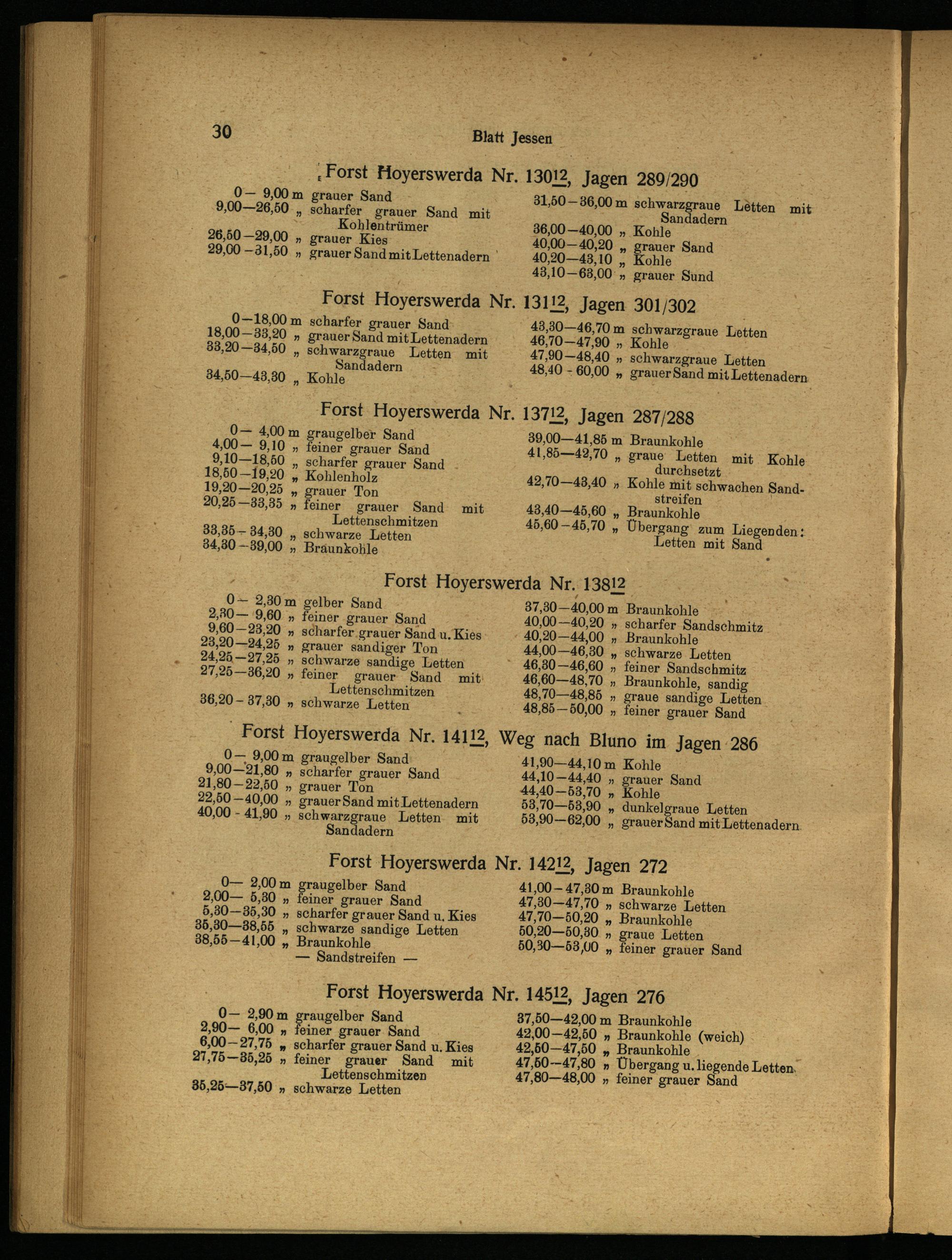 0— 2,00 m graugelber Sand 2,00— 5,80„ feiner grauer Sand 5,30—85,30„ scharfer grauer Sand u. Kies 35,30—838,55„ schwarze sandige Letten 38,55—41,00„ Braunkohle — Sandstreifen—