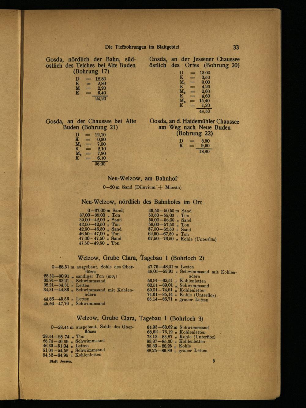 Gosda, nördlich der Bahn, süd- Gosda, an der Jessener Chaussee Östlich des Teiches bei Alte Buden Östlich des Ortes(Bohrung 20)