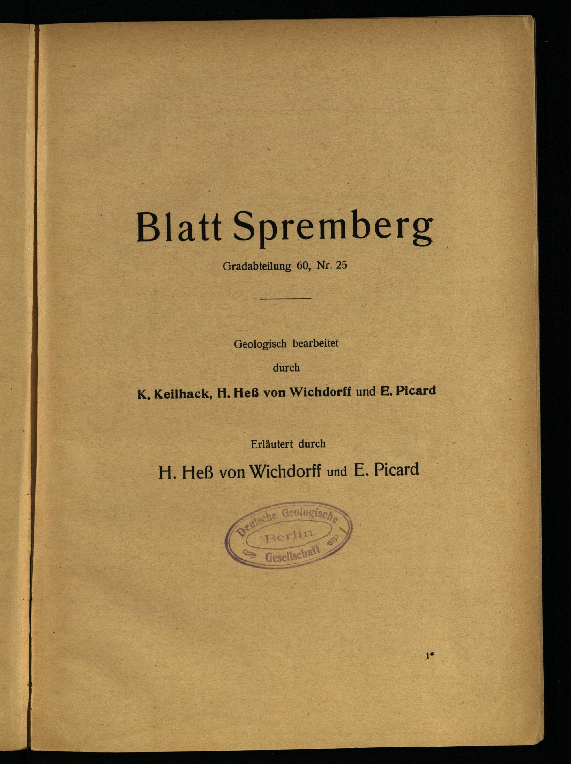 Blatt Spremberg Gradabteilung 60, Nr. 25 Geologisch bearbeitet durch K. Keilhack, H. Heß von Wichdorff und E. Picard Erläutert durch H. Heß von Wichdorff und E. Picard Deutsche Geologische 88888 Berlin. Gesellschaft 1*