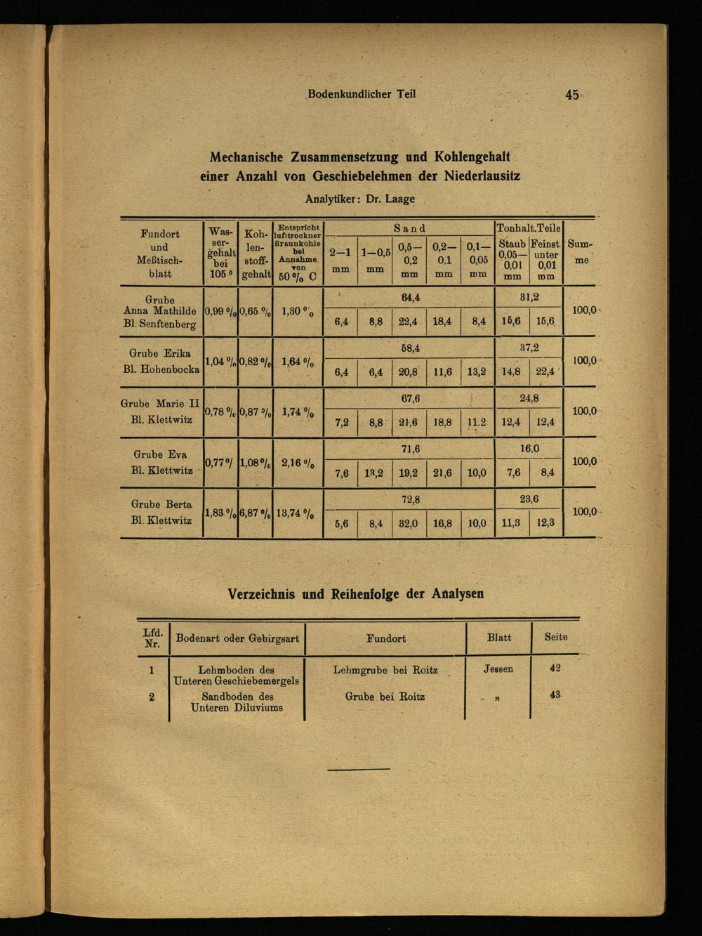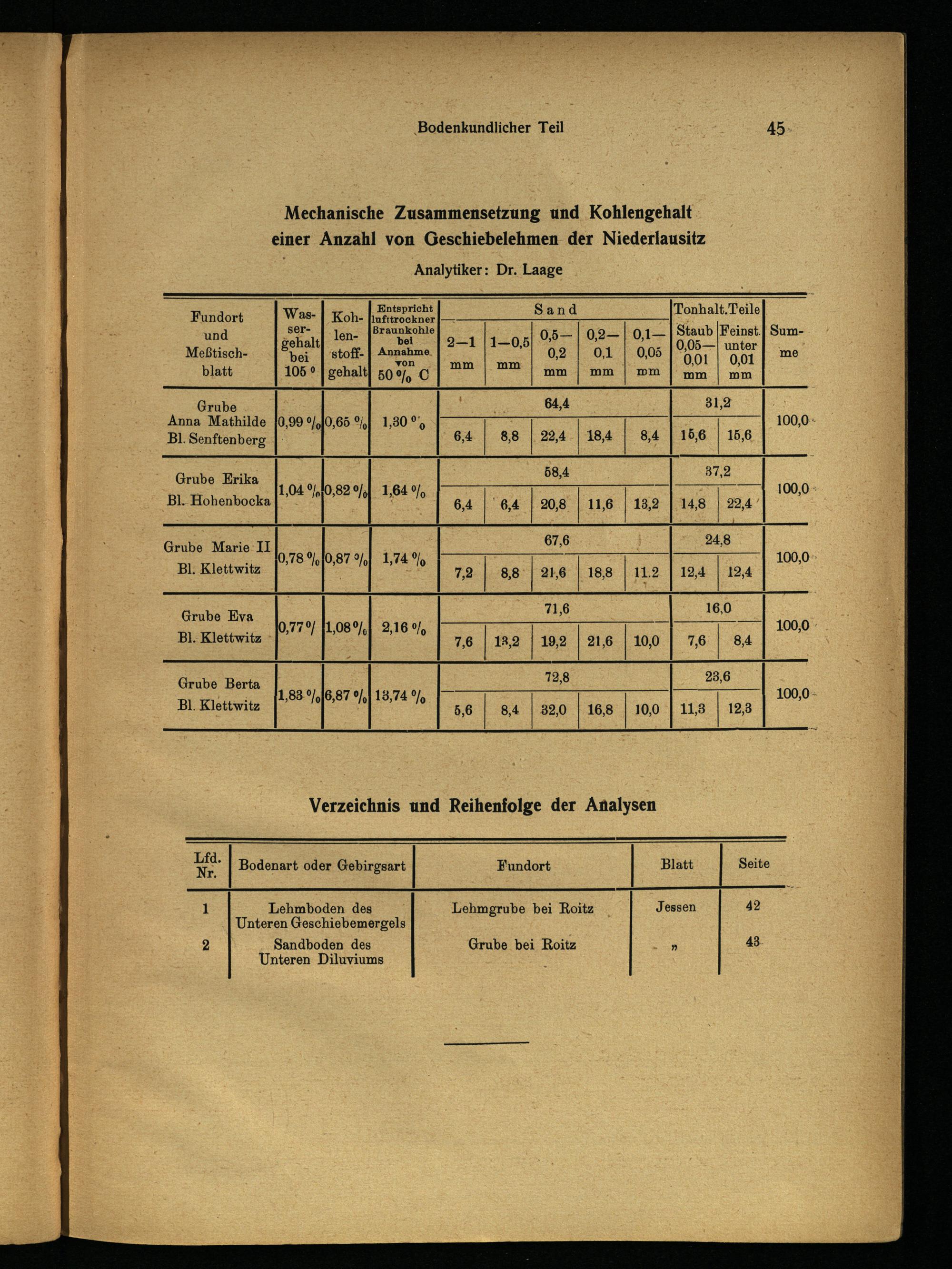 CM Bodenart oder Gebirgsart Fundort| Blatt| Seite A N NS 1 Lehmboden des; Lehmgrube bei Roitz Jessen 42 Unteren Geschiebemergels
