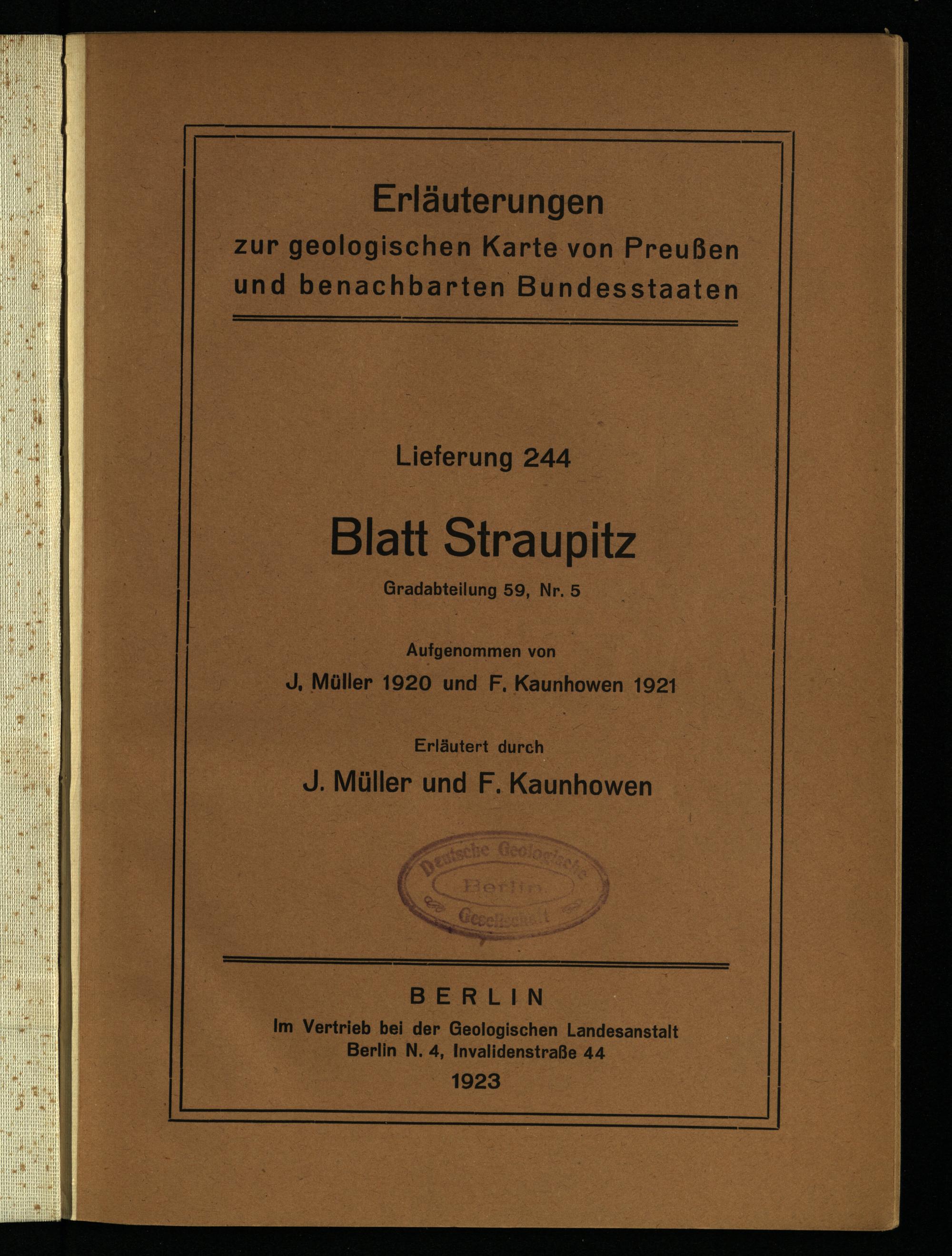 Im Vertrieb bei der Geologischen Landesanstalt Berlin N. 4, Invalidenstraße 44