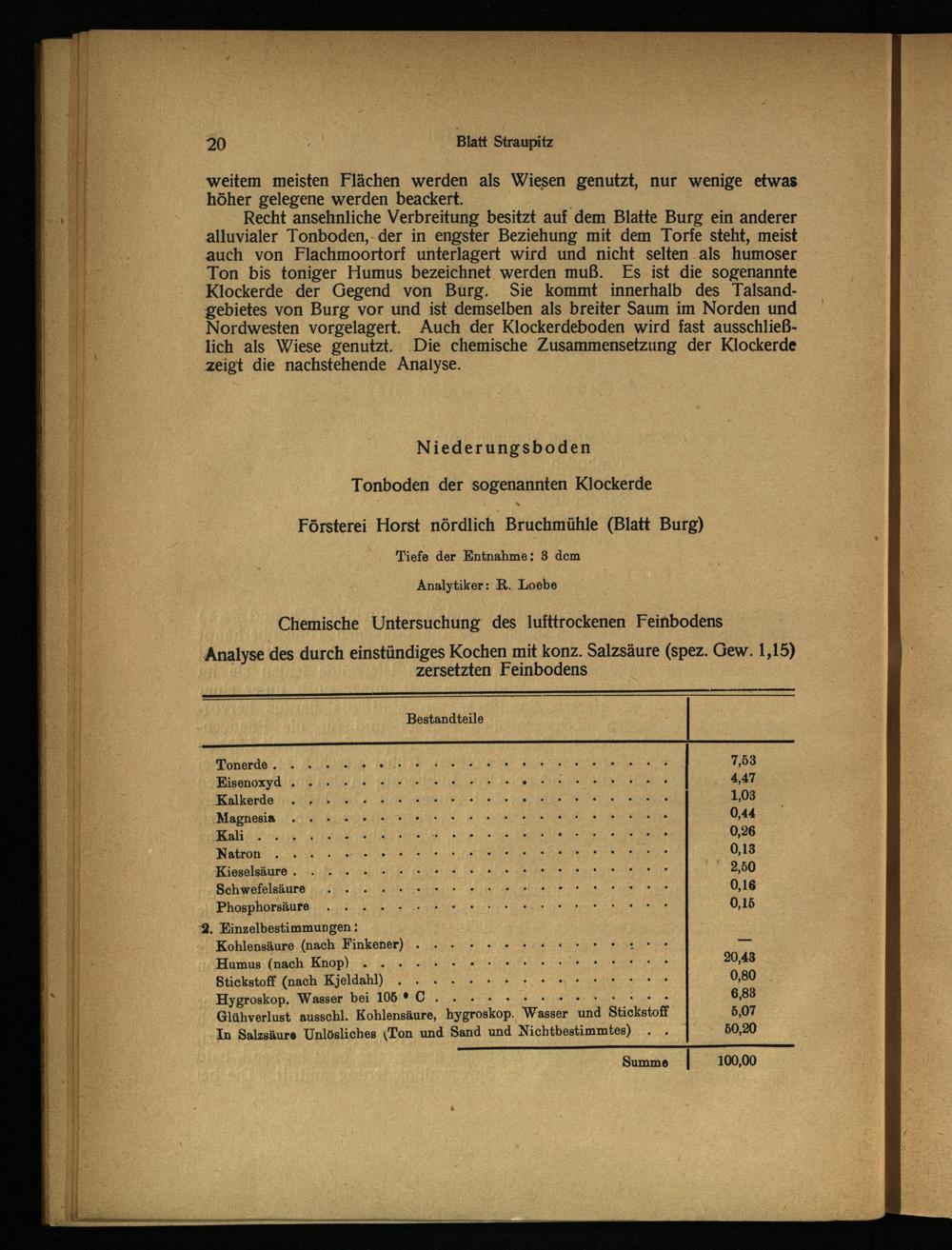 Försterei Horst nördlich Bruchmühle(Blatt Burg) Tiefe der Entnahme: 3 dem Analytiker: R. Loebe