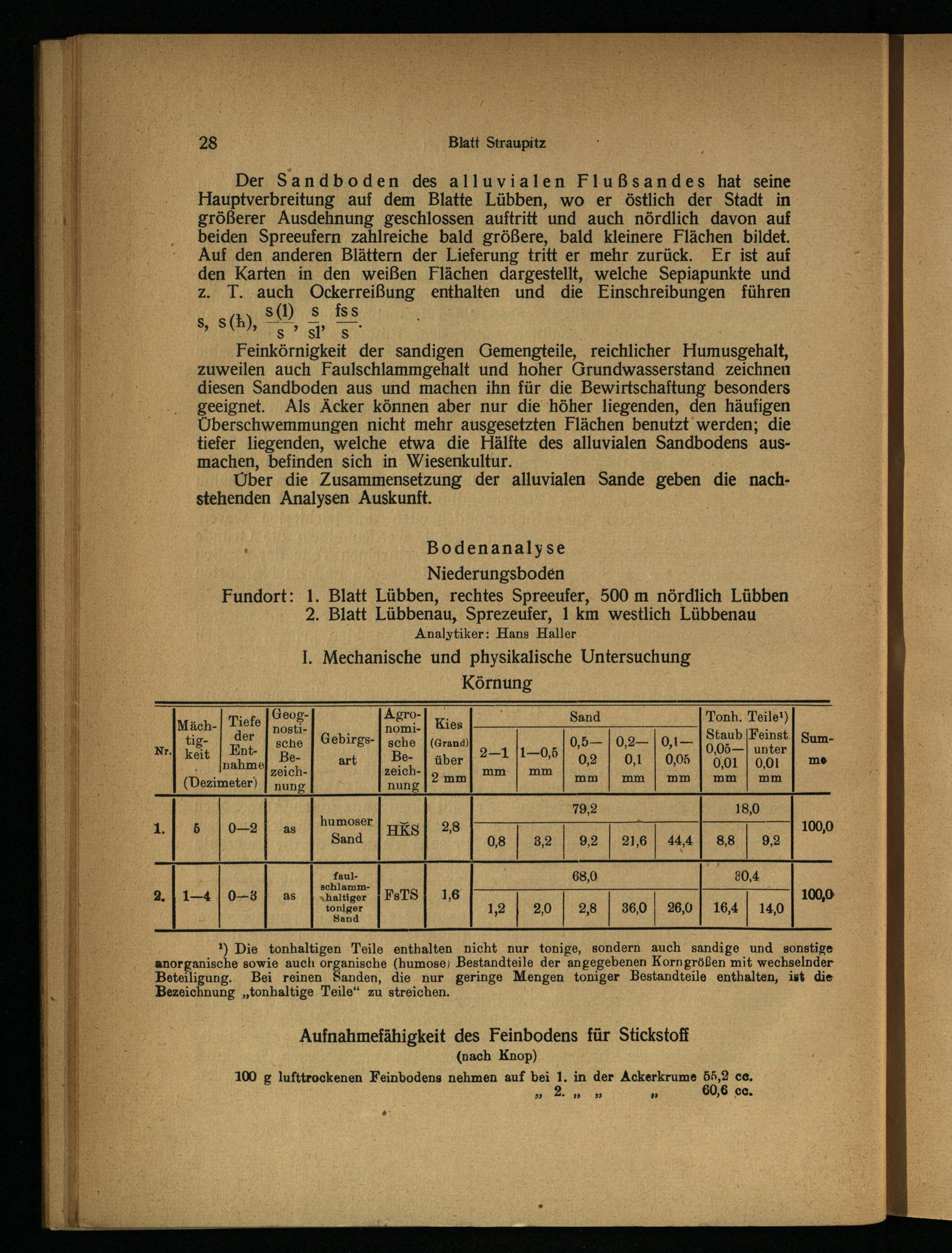 Fundort: 1. Blatt Lübben , rechtes Spreeufer, 500 m nördlich Lübben 2. Blatt Lübbenau, Sprezeufer, 1 km westlich Lübbenau Analytiker: Hans Haller