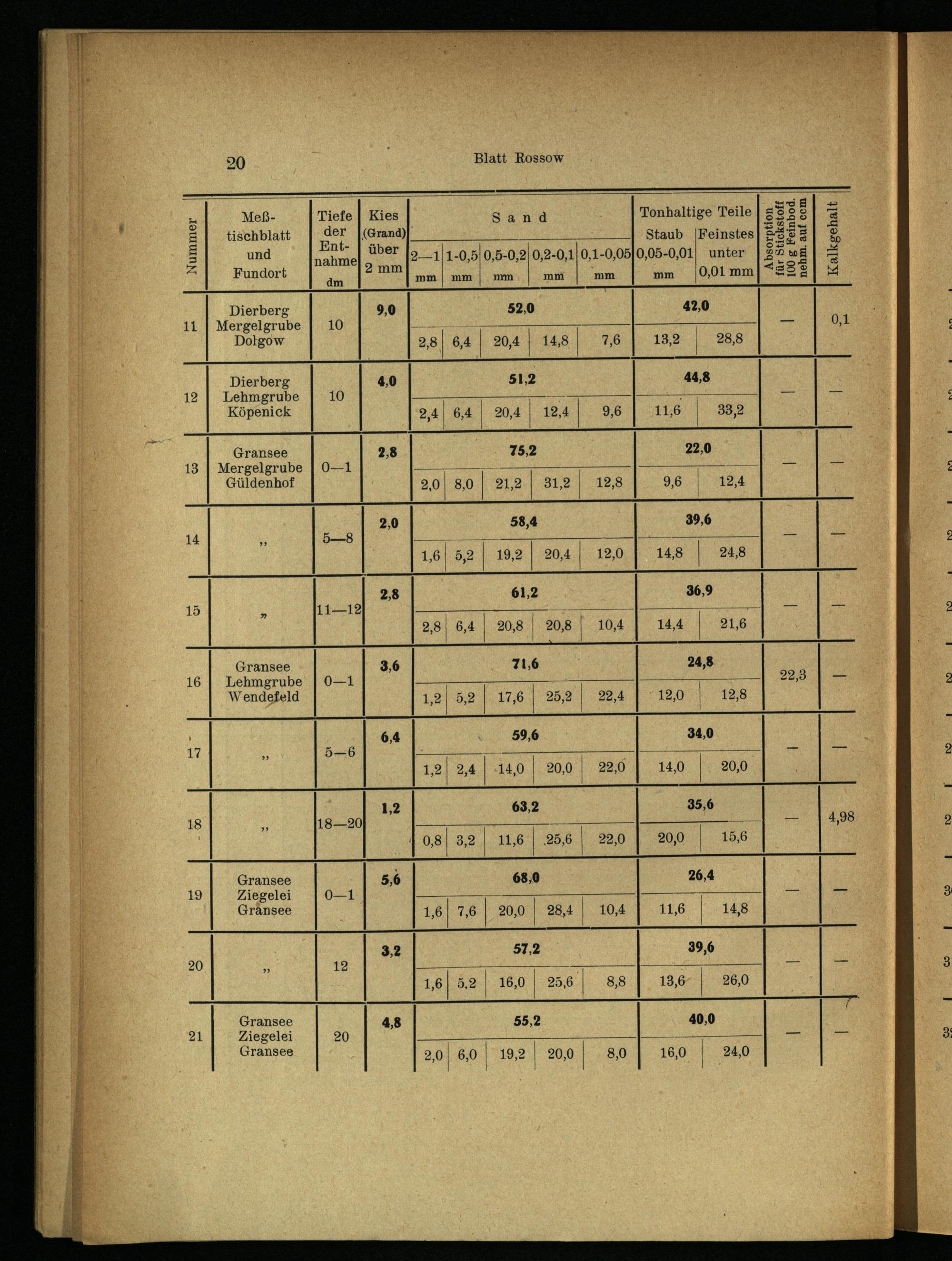 Absorption für Stickstoff 100 g Feinbod. nehm. auf ccm Kalkgehalt