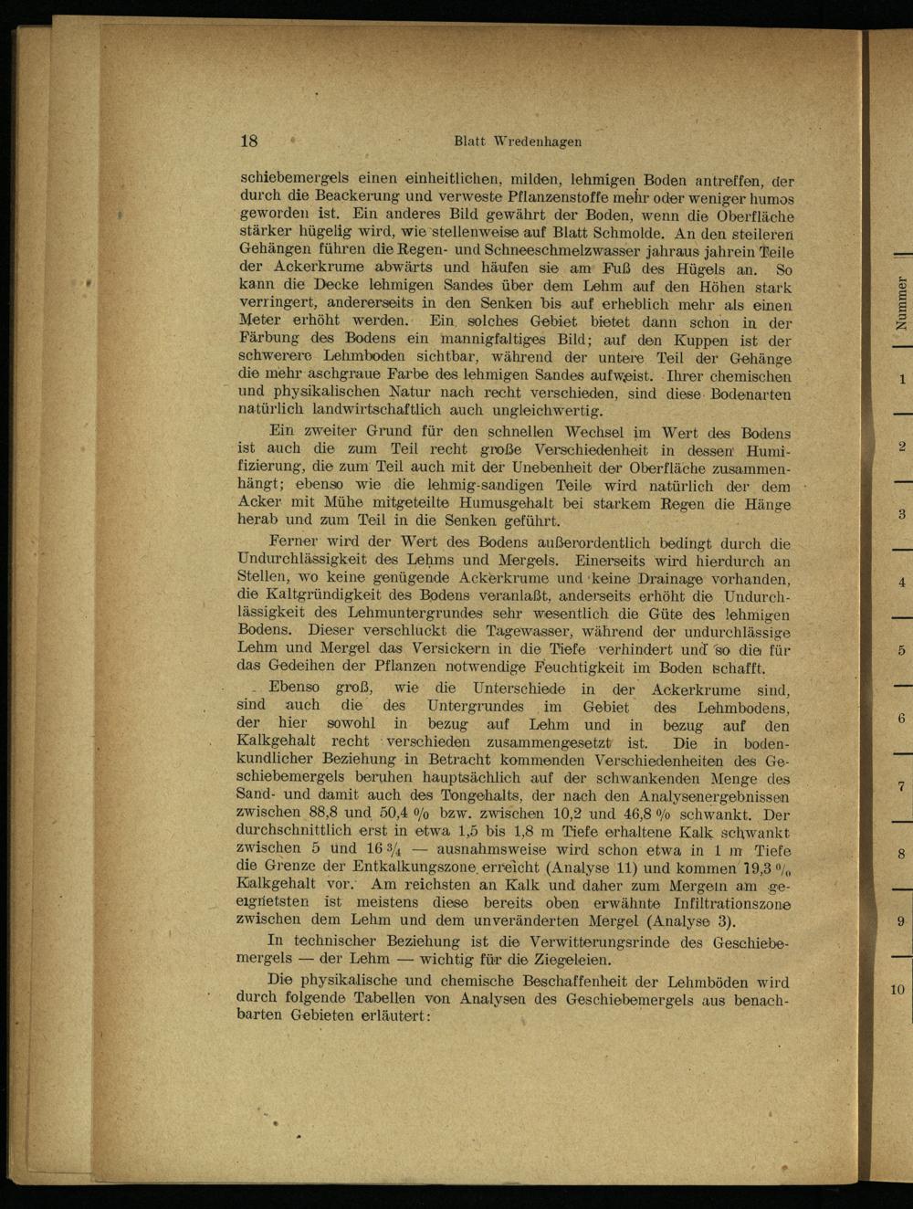 Die physikalische und chemische Beschaffenheit der Lehmböden wird durch folgende Tabellen von Analysen des Geschiebemergels aus benachbarten Gebieten erläutert: