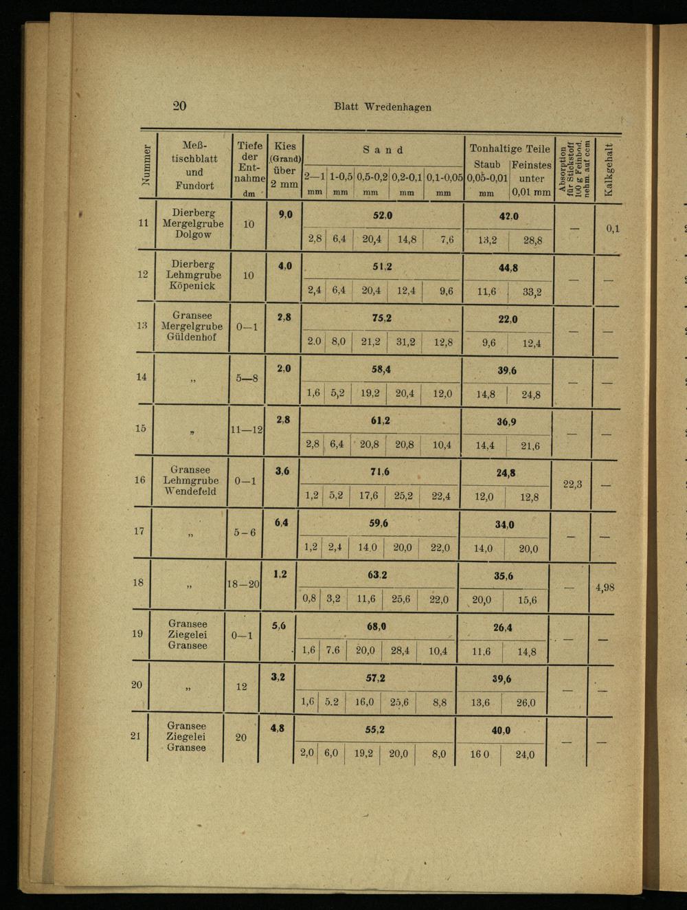 Nummer Absorption für Stickstoff 100 g Feinbad. nehm. auf ccm Kalkgehalt