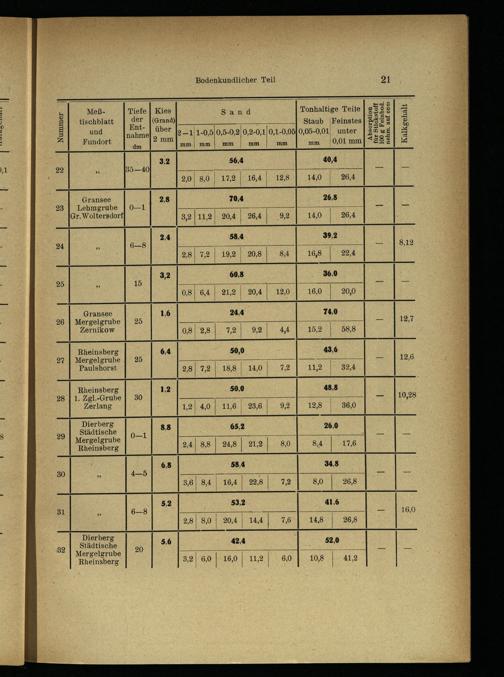 Meß- Tiefe| Kies Sand Tonhaltige Teile’ tischblatt a(Grand) Staub|Feinstes|: und nahme DT 125 0,5-0,2/0,2-0,1/0,1-0,05|0,05-0,01. unter Fundort dm 2 mm mm| mm.| mm mm|0,01 mm