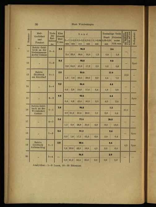 Meß- Tiefe| Kies Sand Tonhaltige Teile tischblatt| der|(Grand)l und Ent- über