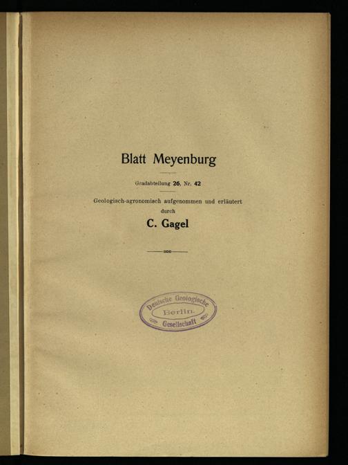 Blatt Meyenburg Gradabteilung 26, Nr. 42 Geologisch- agronomisch aufgenommen und erläutert durch C. Gagel ODD Deutsche Geologische Berlin. Gesellschaft