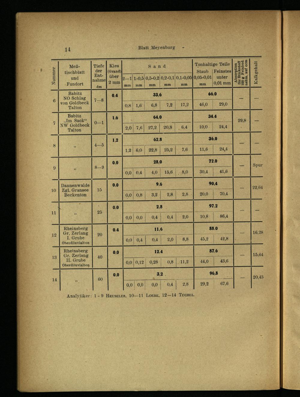 Analytiker: 1-9 HEuUsELER, 10—11 LOEBE, 12—14 TUCHEL.