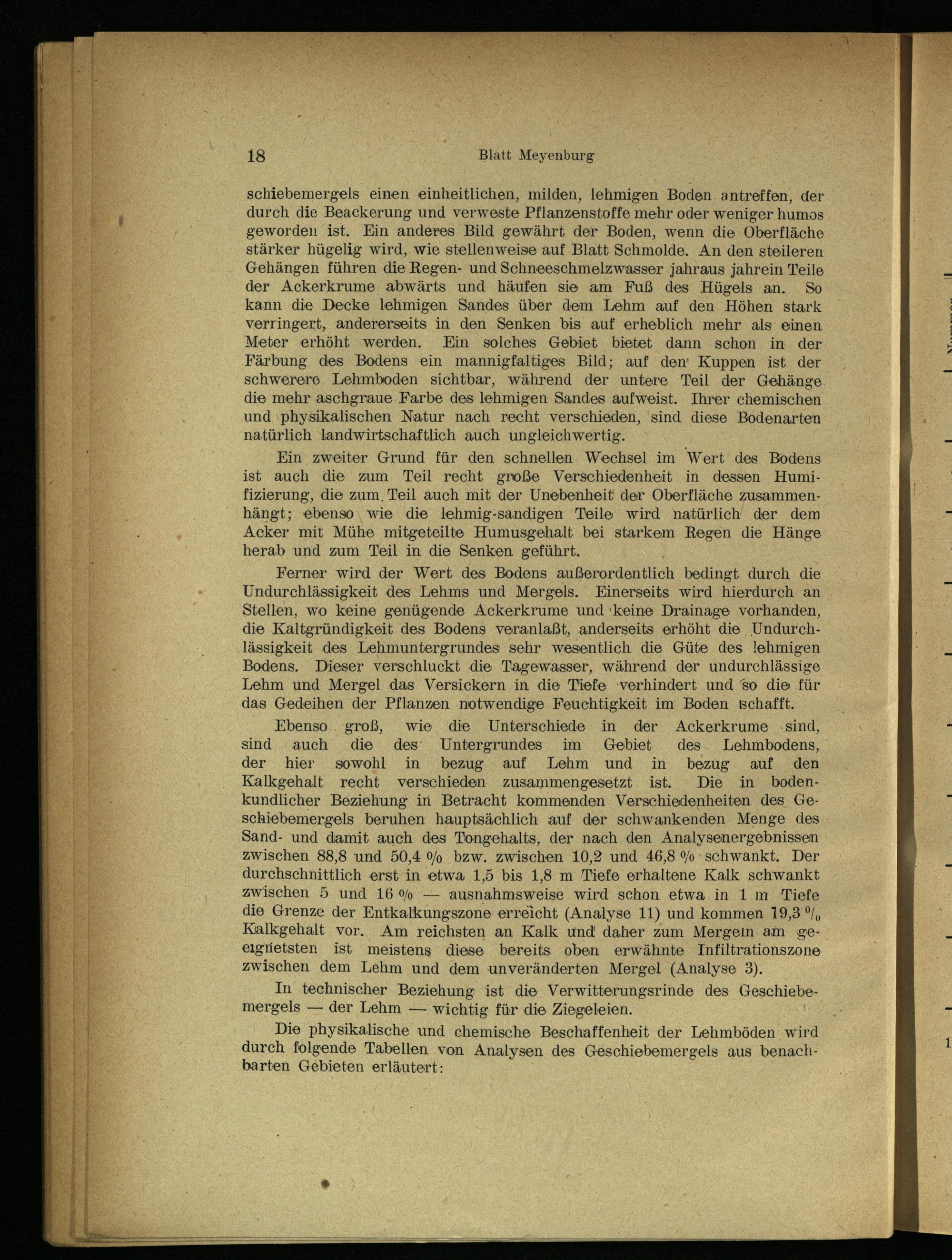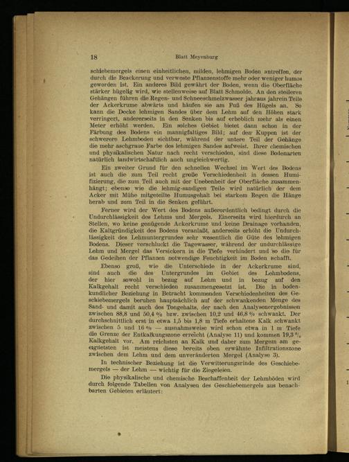 Die physikalische und chemische Beschaffenheit der Lehmböden wird durch folgende Tabellen von Analysen des Geschiebemergels aus benachbarten Gebieten erläutert: