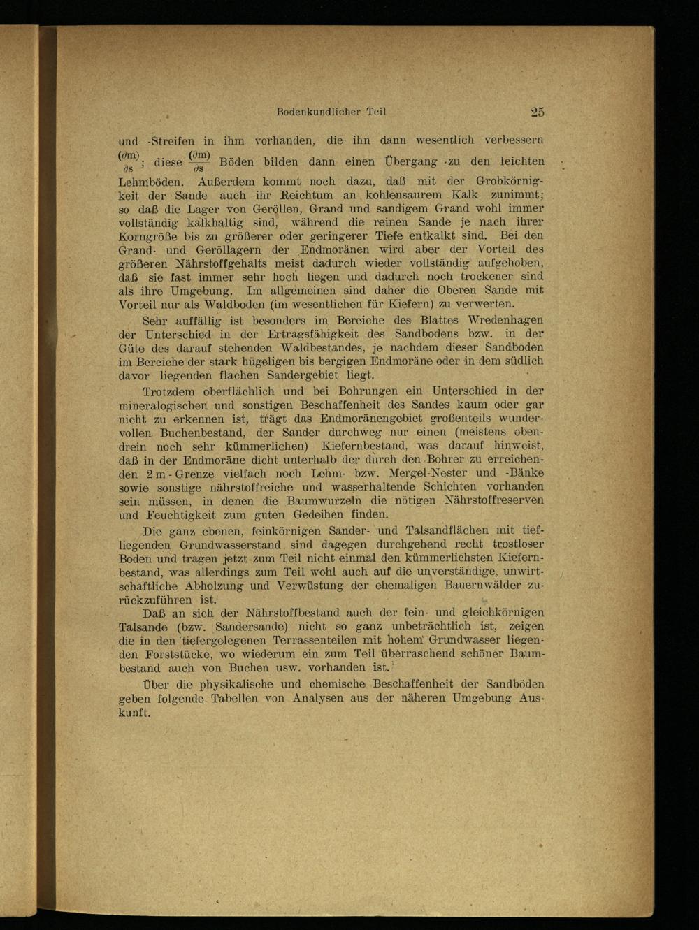 Sehr auffällig ist besonders im Bereiche des Blattes Wredenhagen der Unterschied in der Ertragsfähigkeit des Sandbodens bzw. in der Güte des darauf stehenden Waldbestandes, je nachdem dieser Sandboden im Bereiche der stark hügeligen bis bergigen Endmoräne oder in dem SPAN davor liegenden flachen Sandergebiet liegt.