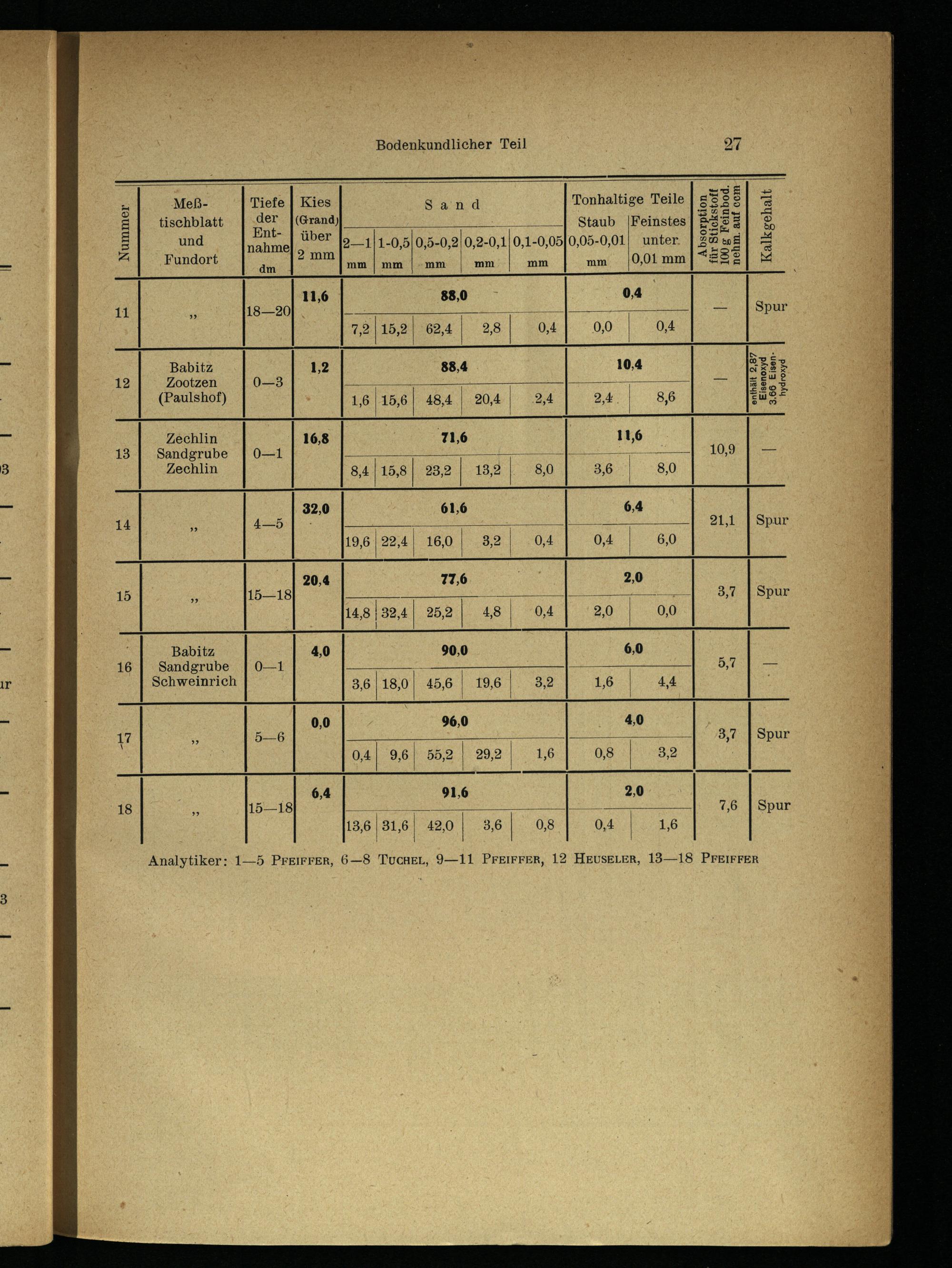 Analytiker: 1—5 PFEIFFER, 6—8 TUCHEL, 9—11 PFEIFFER, 12 HEUSELER, 13—18 PFEIFFER