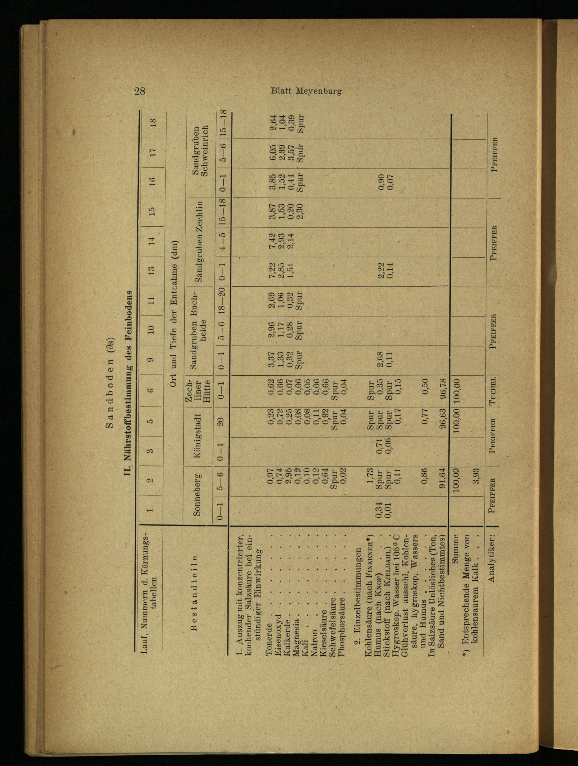 Kohlensäure(nach FINKENER*) KK. 1,73 Spur Spur Humus(nach Knor).... 0,34 Spur Spur|: 0,35 Stickstoff(nach KJELDAHL). 0,01| Spur|| Spur| Spur Hygroskop. Wasser bei 105° C 0,11} 0,171 0,15 Glühverlust ausschl, Kohlen-|