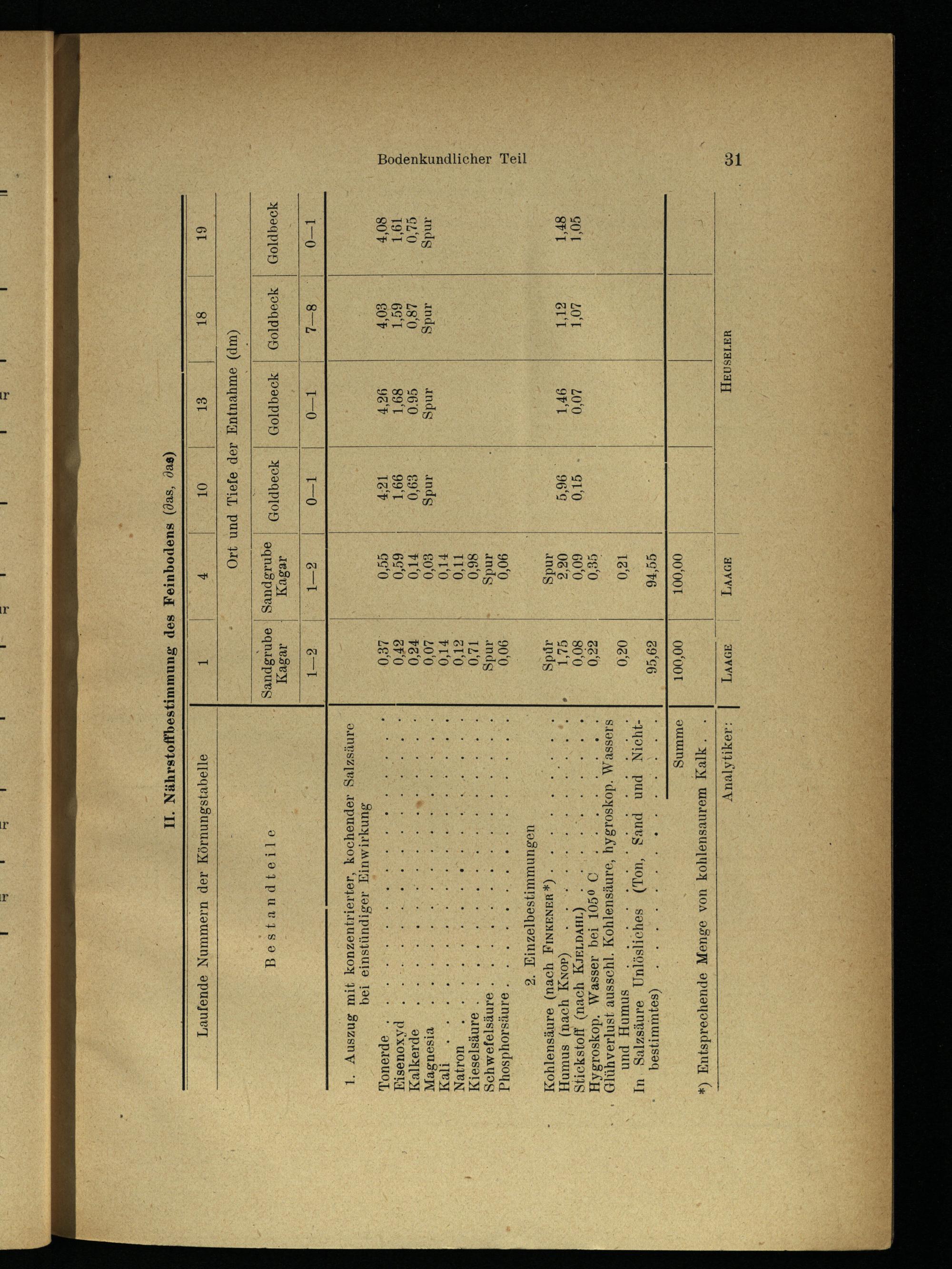 und Humus. N, 0,20 In. Salzsäure Unlösliches(Ton, Sand und Nicht