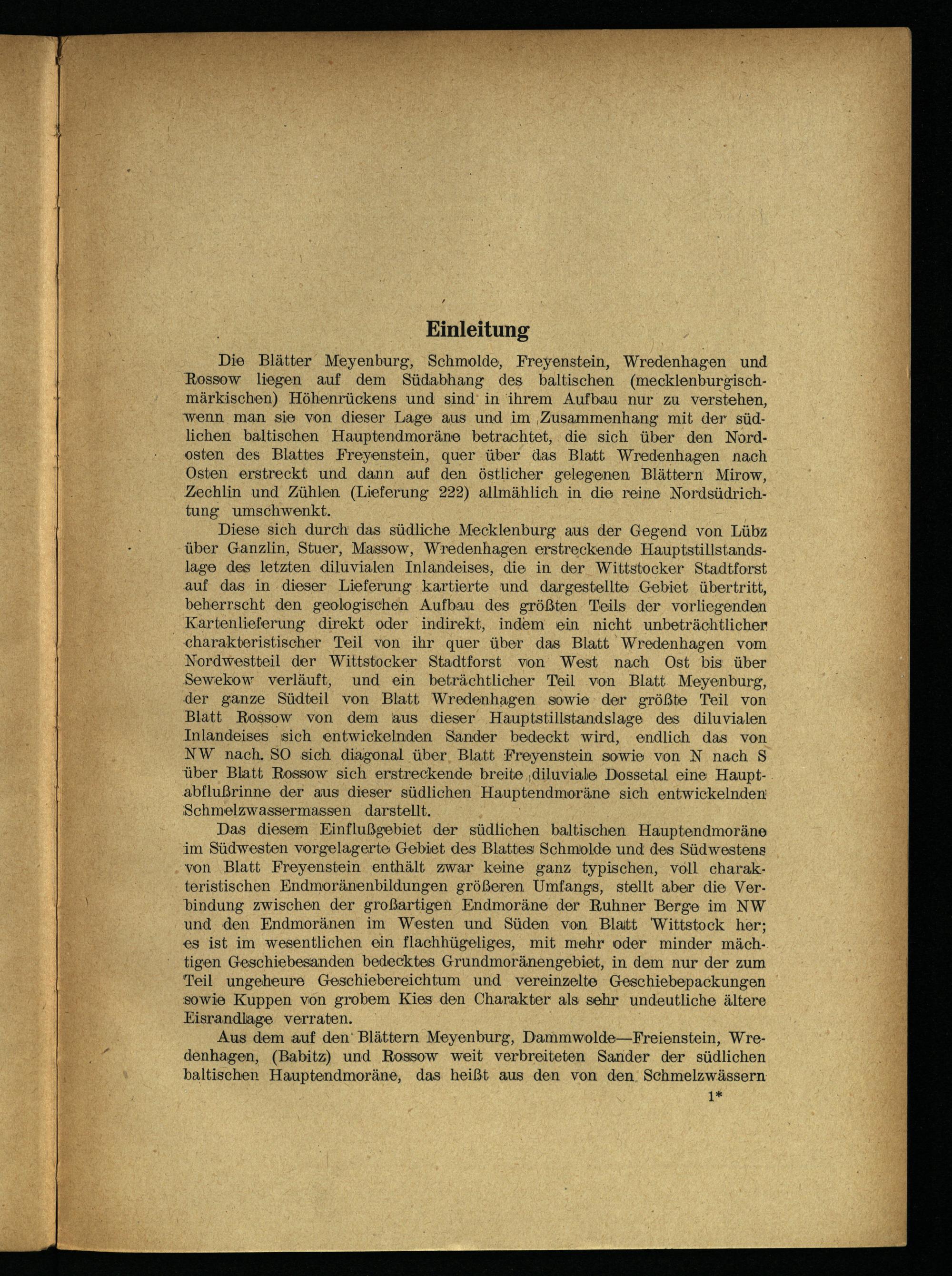 Die Blätter Meyenburg , Schmolde, Freyenstein , Wredenhagen und Rossow liegen auf dem Südabhang des baltischen(mecklenburgischmärkischen) Höhenrückens und sind‘ in ihrem Aufbau nur zu verstehen, wenn man sie von dieser Lage aus und im ‚Zusammenhang mit der südlichen baltischen Hauptendmoräne betrachtet, die sich über den Nordosten des Blattes Freyenstein , quer über das Blatt Wredenhagen nach Osten erstreckt und dann auf den östlicher gelegenen Blättern Mirow , Zechlin und Zühlen(Lieferung 222) allmählich in die reine Nordsüdrichtung umschwenkt.