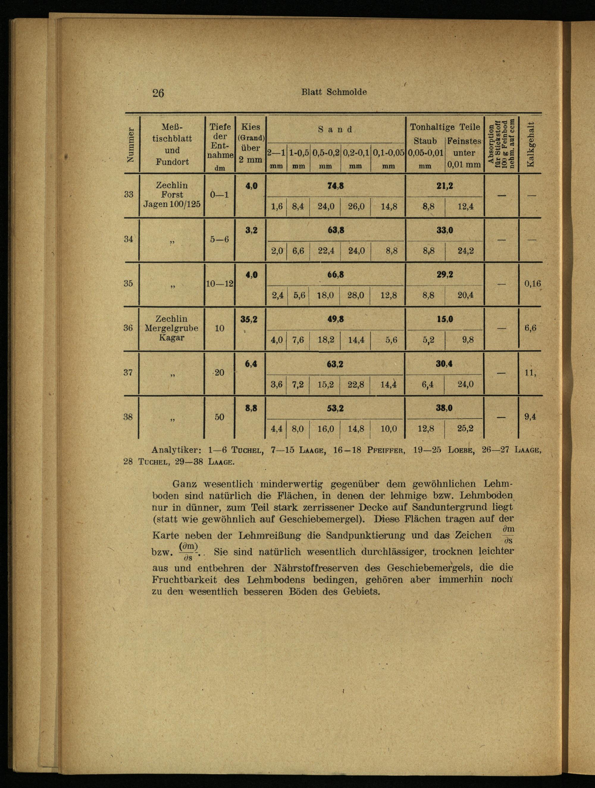 Ganz wesentlich‘ minderwertig gegenüber dem gewöhnlichen Lehmboden sind natürlich die Flächen, in denen der lehmige bzw. Lehmboden, nur in dünner, zum Teil stark zerrissener Decke auf Sanduntergrund liegt (statt wie gewöhnlich auf Geschiebemergel). Diese Flächen tragen auf der
