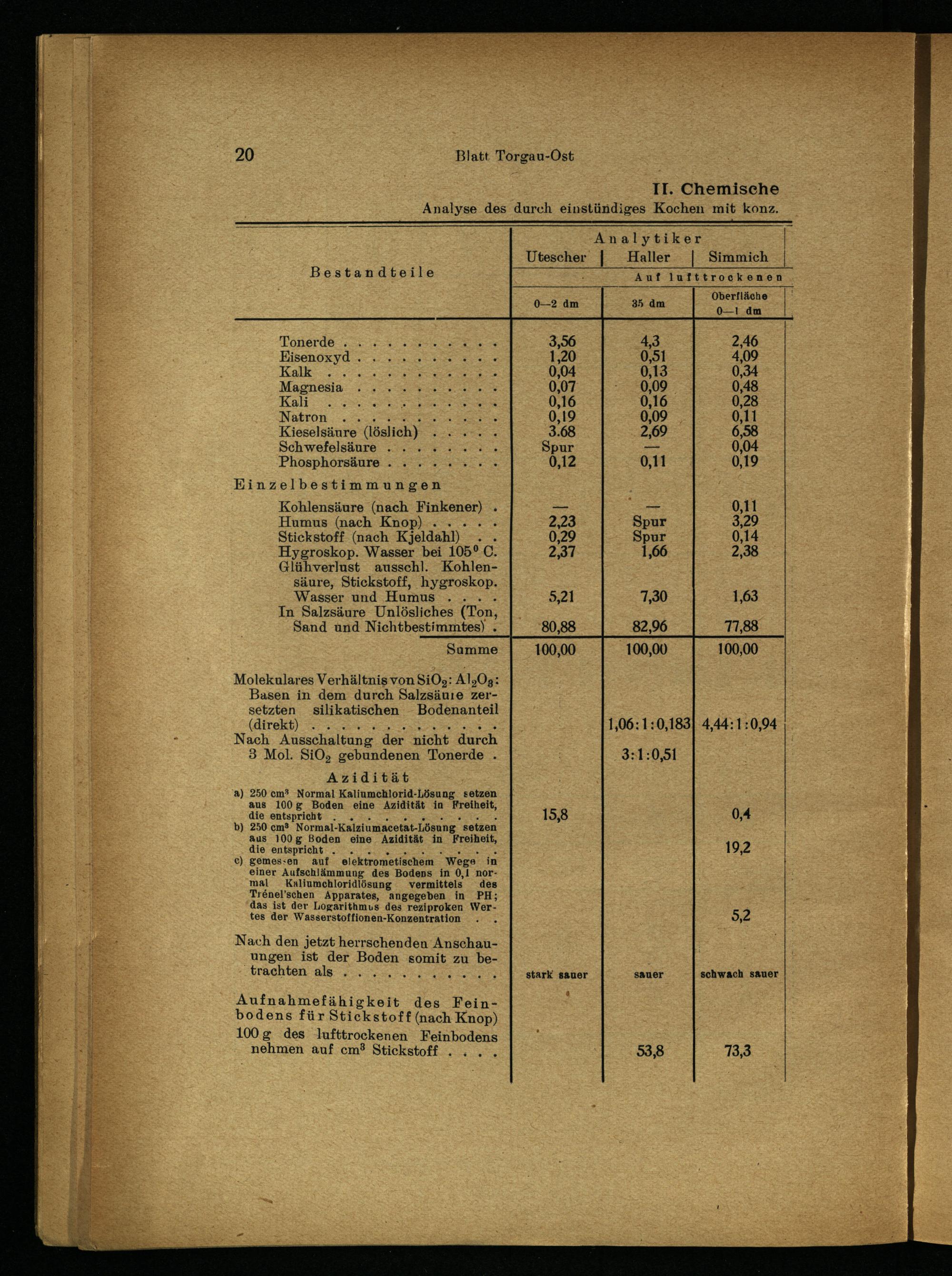 Kohlensäure(nach Finkener) Humus(nach Knop).-.. Stickstoff(nach Kjeldahl).. Hygroskop. Wasser bei 105° C. Glühverlust ausschl. Kohlensäure, Stickstoff, hygroskop. Wasser und Humus,.. In Salzsäure Unlösliches(Ton, Sand und Nichtbestimmtes).