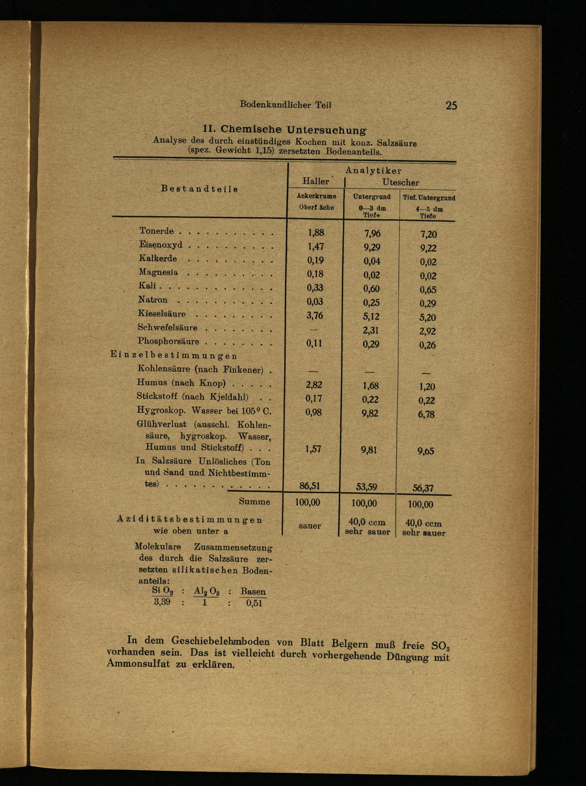 Analyse des durch einstündiges Kochen mit konz. Salzsäure (spez. Gewicht 1,15) zersetzten Bodenanteils.