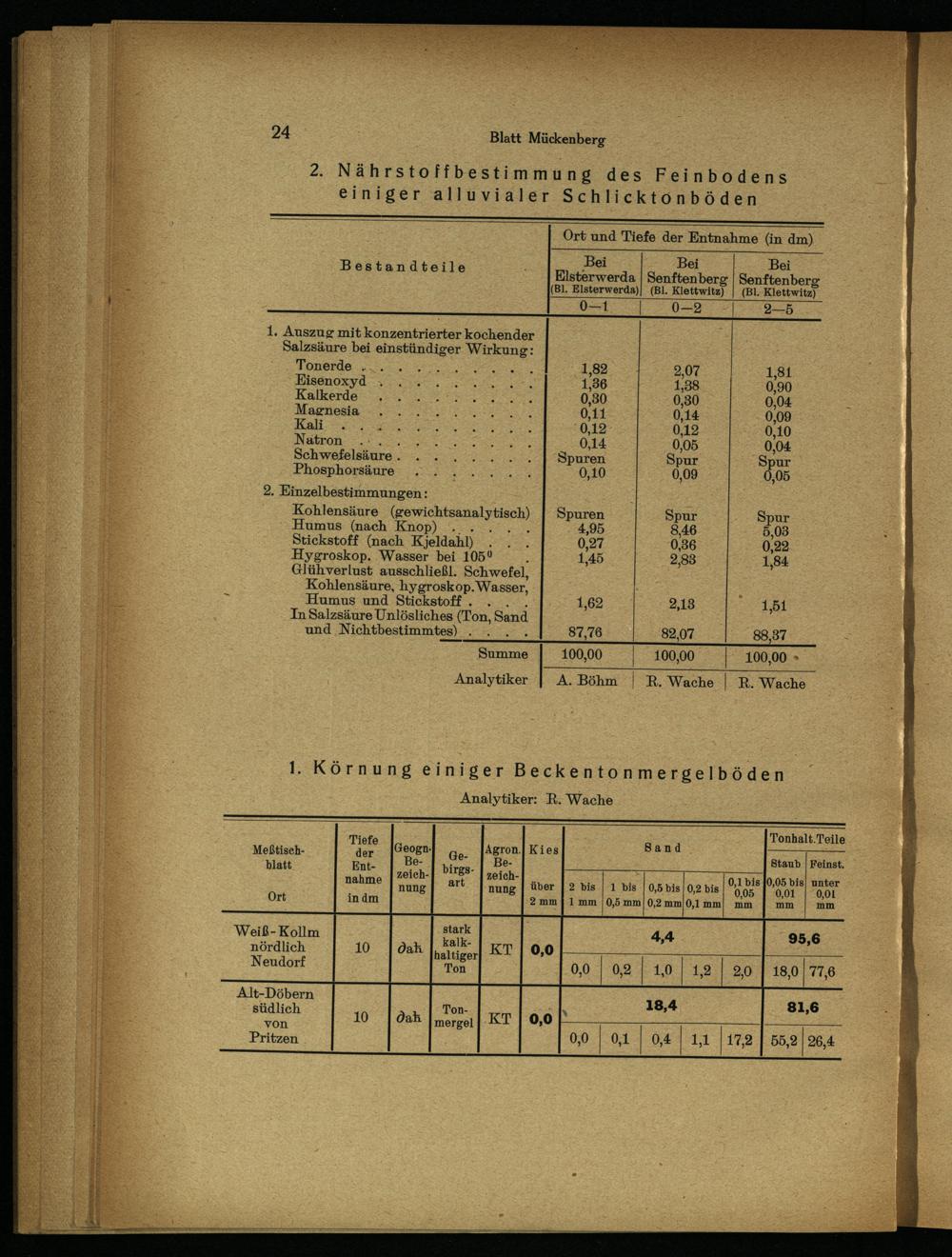 2. Nährstoffbestimmung des Feinbodens einiger alluvialer Schlicktonböden; Ev A Ort und Tiefe der Entnahme(in dm)