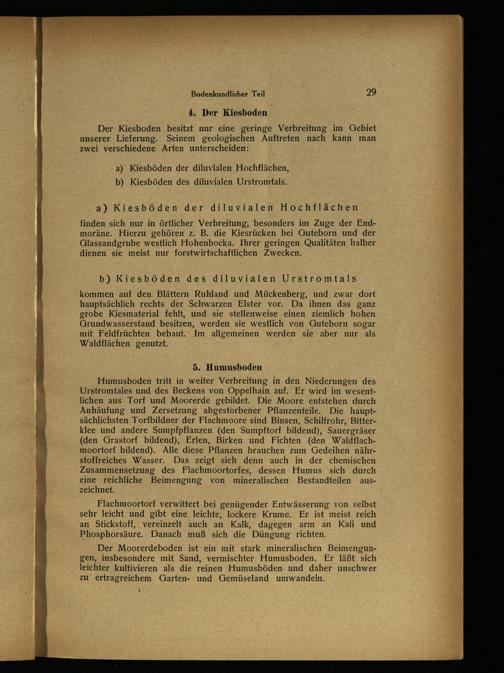 Der Kiesboden besitzt nur eine geringe Verbreitung im Gebiet unserer Lieferung. Seinem geologischen Auftreten nach: kann man zwei verschiedene Arten unterscheiden: