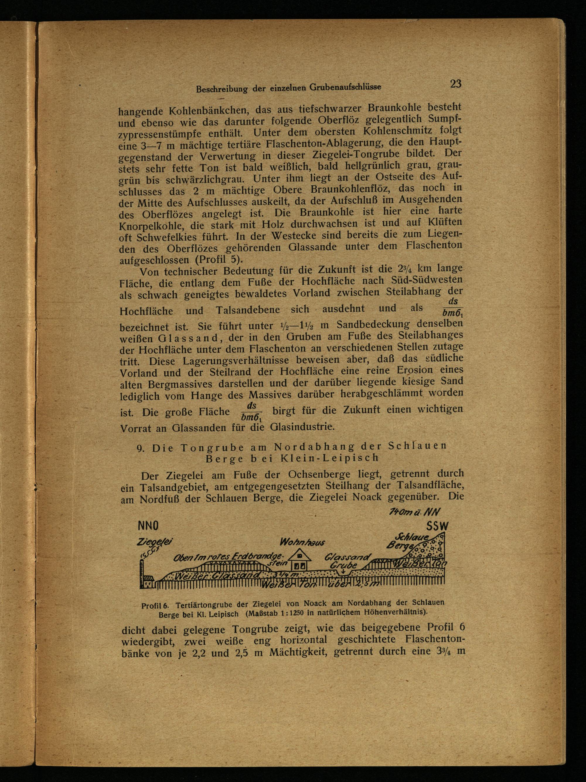 Profil 6. Tertiärtongrube der Ziegelei von Noack am Nordabhang der. Schlauen: Berge bei Kl. Leipisch(Maßstab 1:1250 in natürlichem Höhenverhältnis). En ee