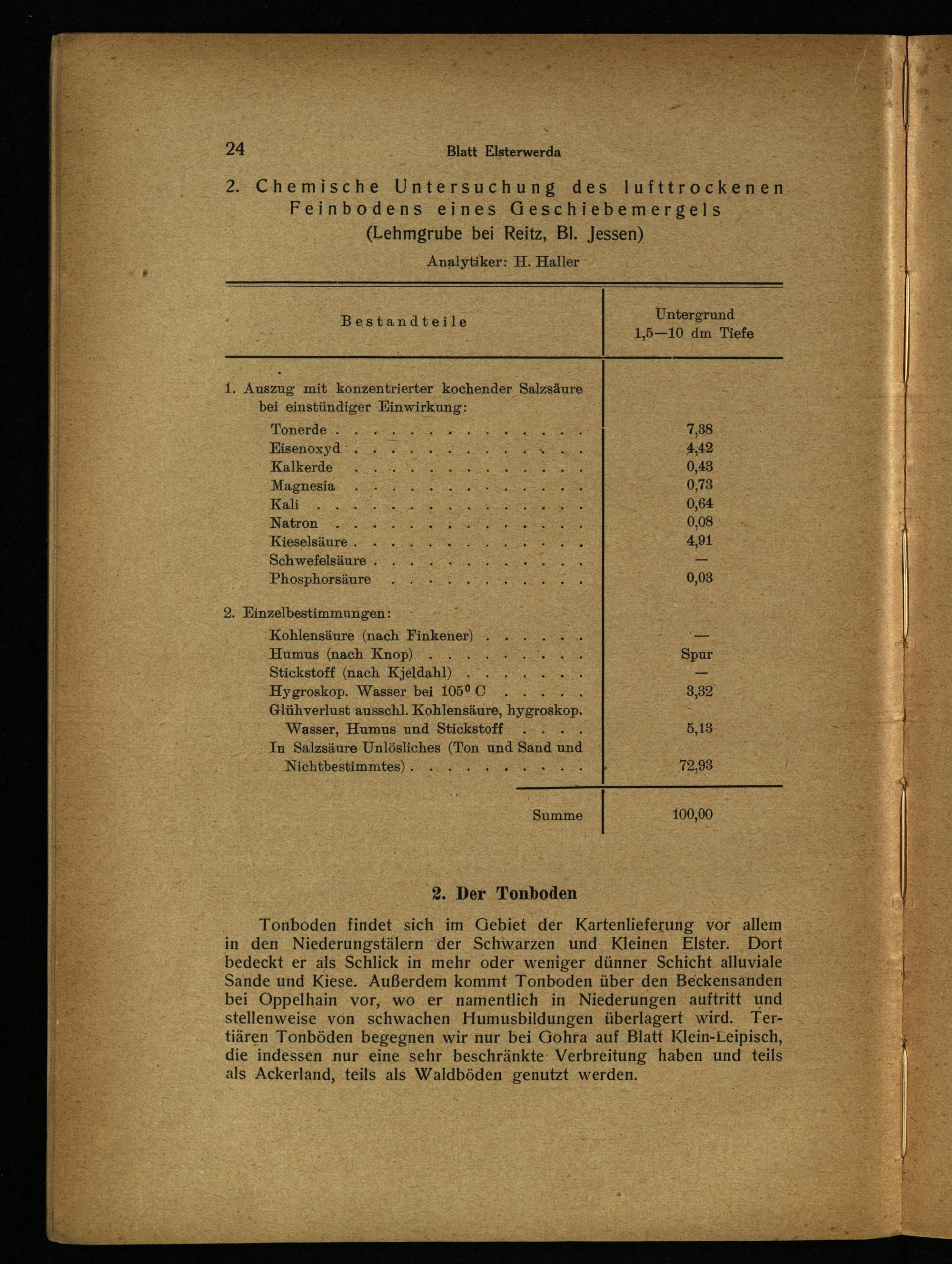 (Lehmgrube bei Reitz, Bl. Jessen) Analytiker: H. Haller 7