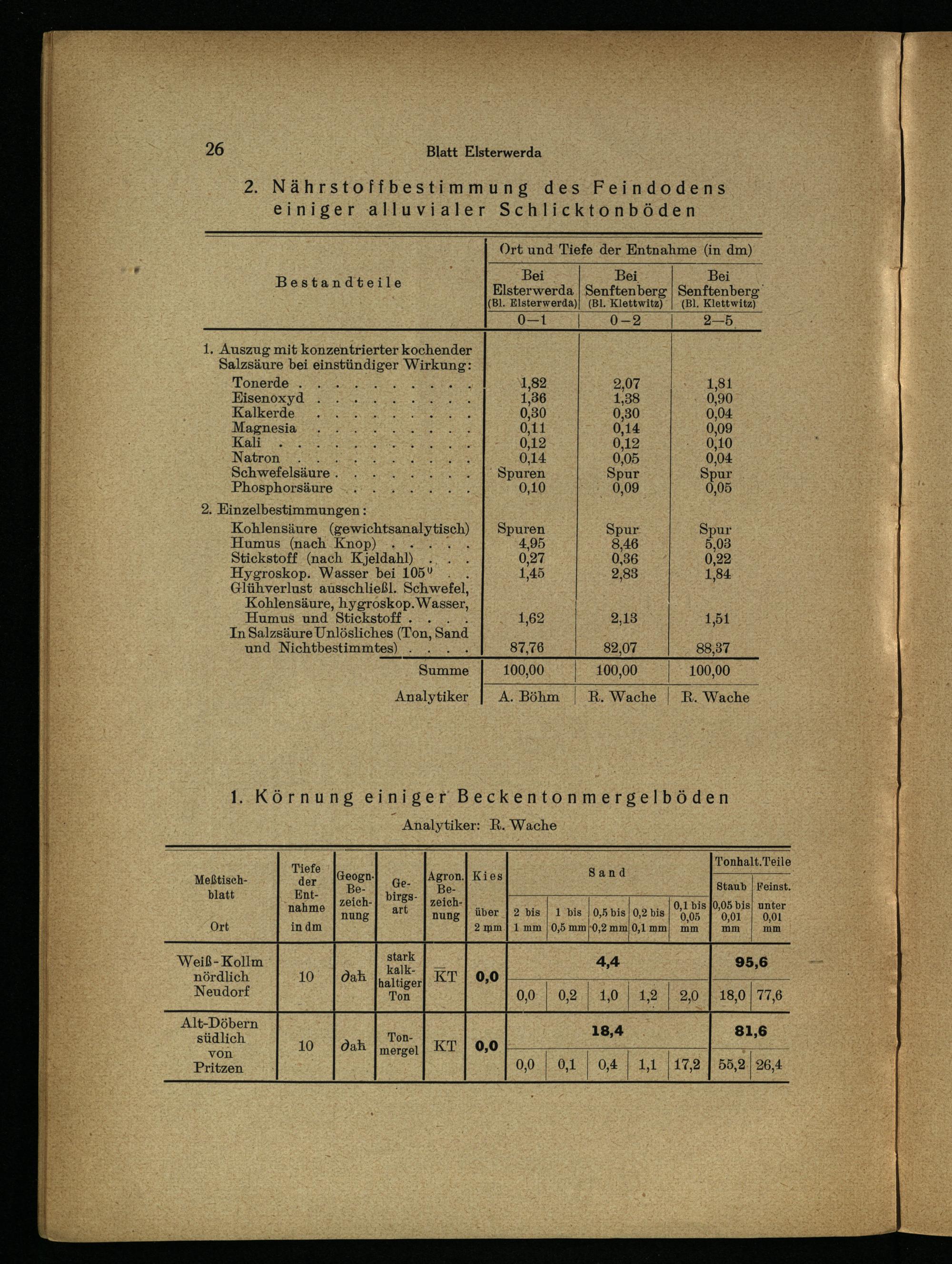2. Nährstoffbestimmung des Feindodens einiger alluvialer Schlicktonböden