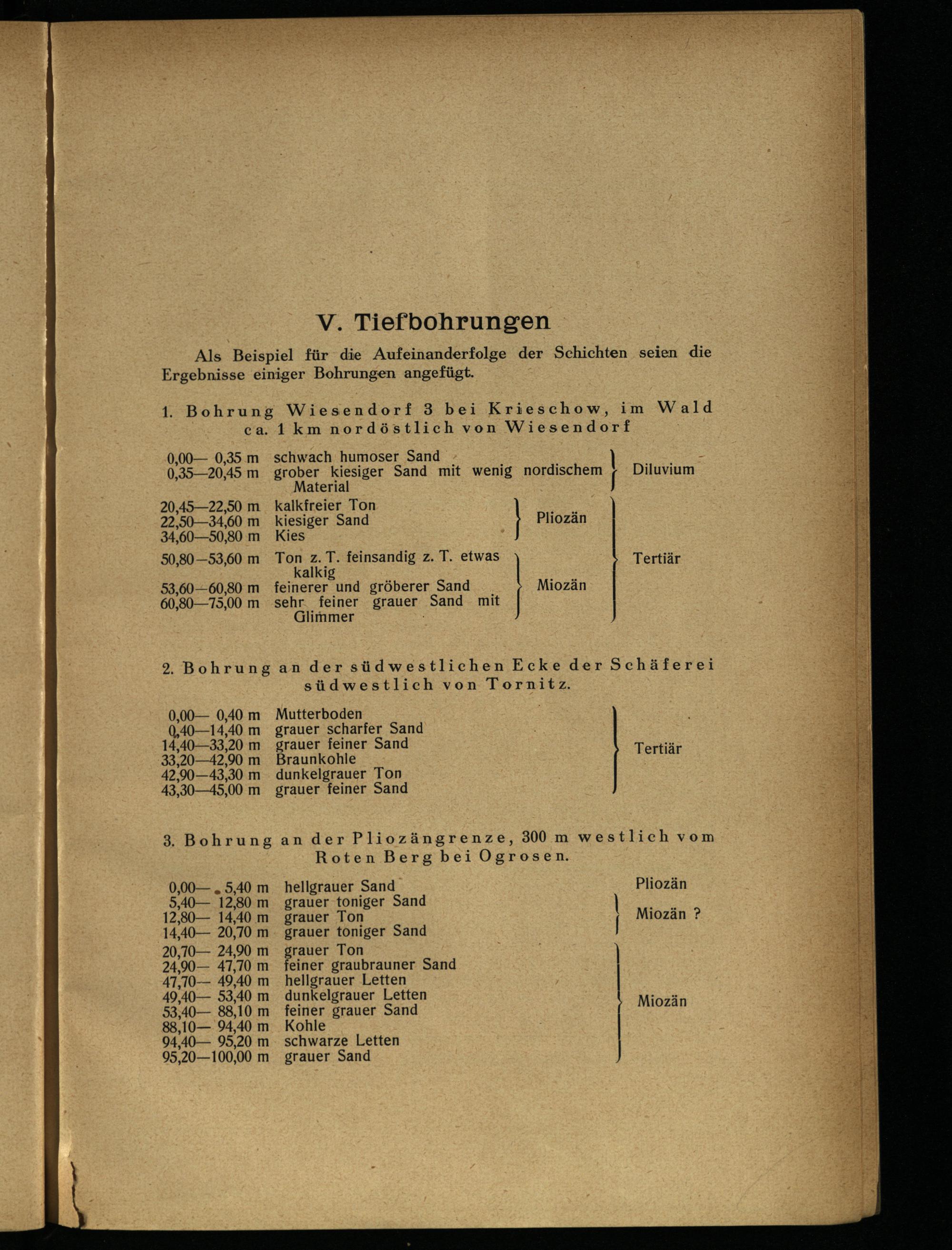 0,00— 0,40 m Mutterboden 0,40—14;'40.m grauer scharfer Sand 14,40—33,20 m grauer feiner Sand Tertiä 33,20—42,90 m Braunkohle STHAT 42; 90— 43, 30 m dunkelgrauer Ton 43,*30—45, ‚00 m grauer feiner Sand