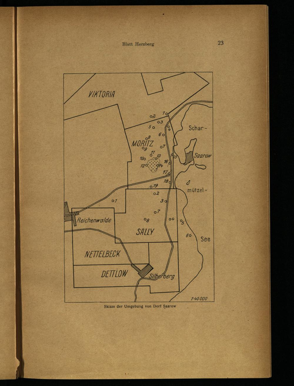 Skizze der Umgebung von Dorf Saarow