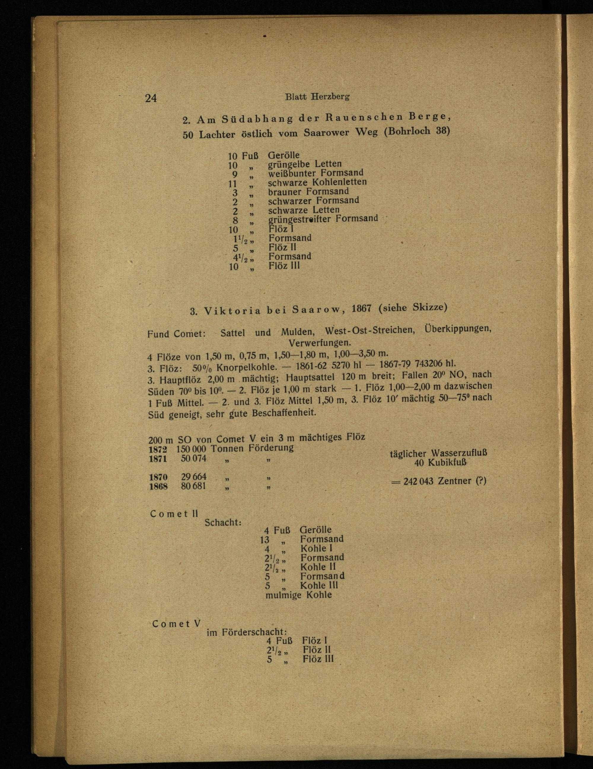3. Flöz: 50% Knorpelkohle.— 1861-62 5270 hl— 1867-79 743206 hl.