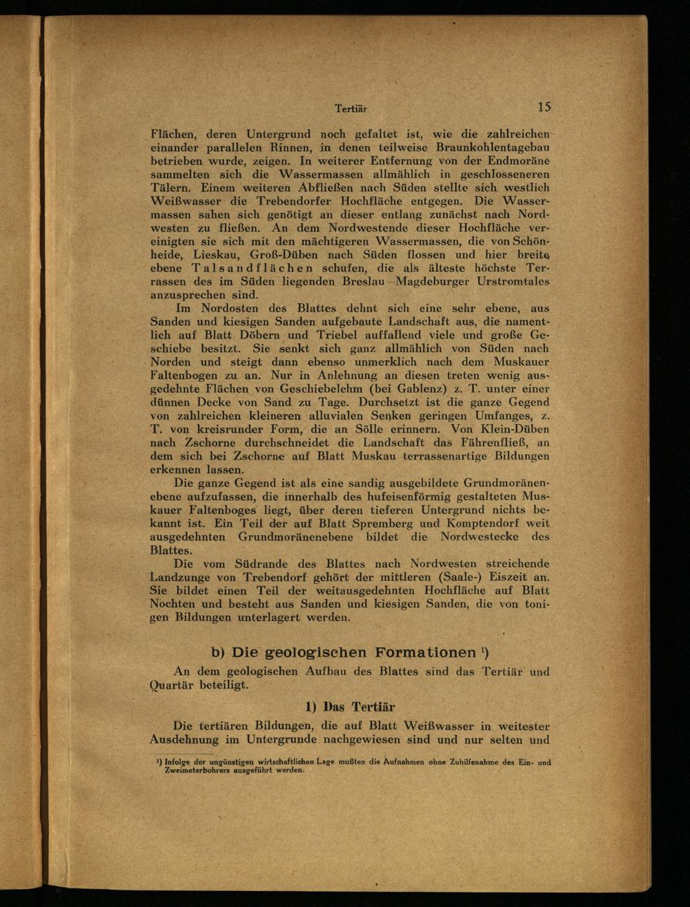 1) Das Tertiär Die tertiären Bildungen, die auf Blatt Weißwasser in weitester Ausdehnung im Untergrunde nachgewiesen sind und nur selten und