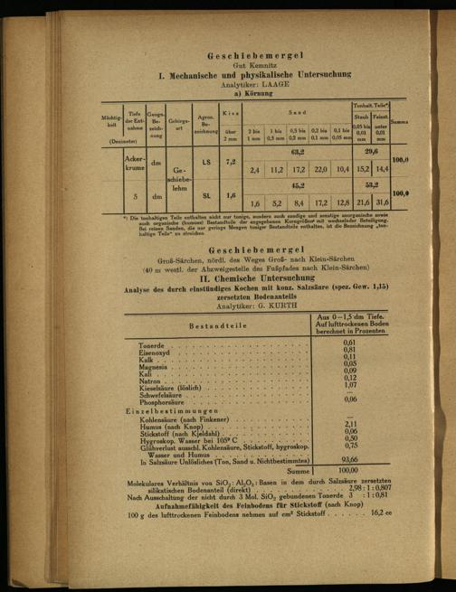 Geschiebemergel; Gut Kemnitz: I. Mechanische und ‚physikalische Untersuchung Analytiker: LAAGE a) Körnung