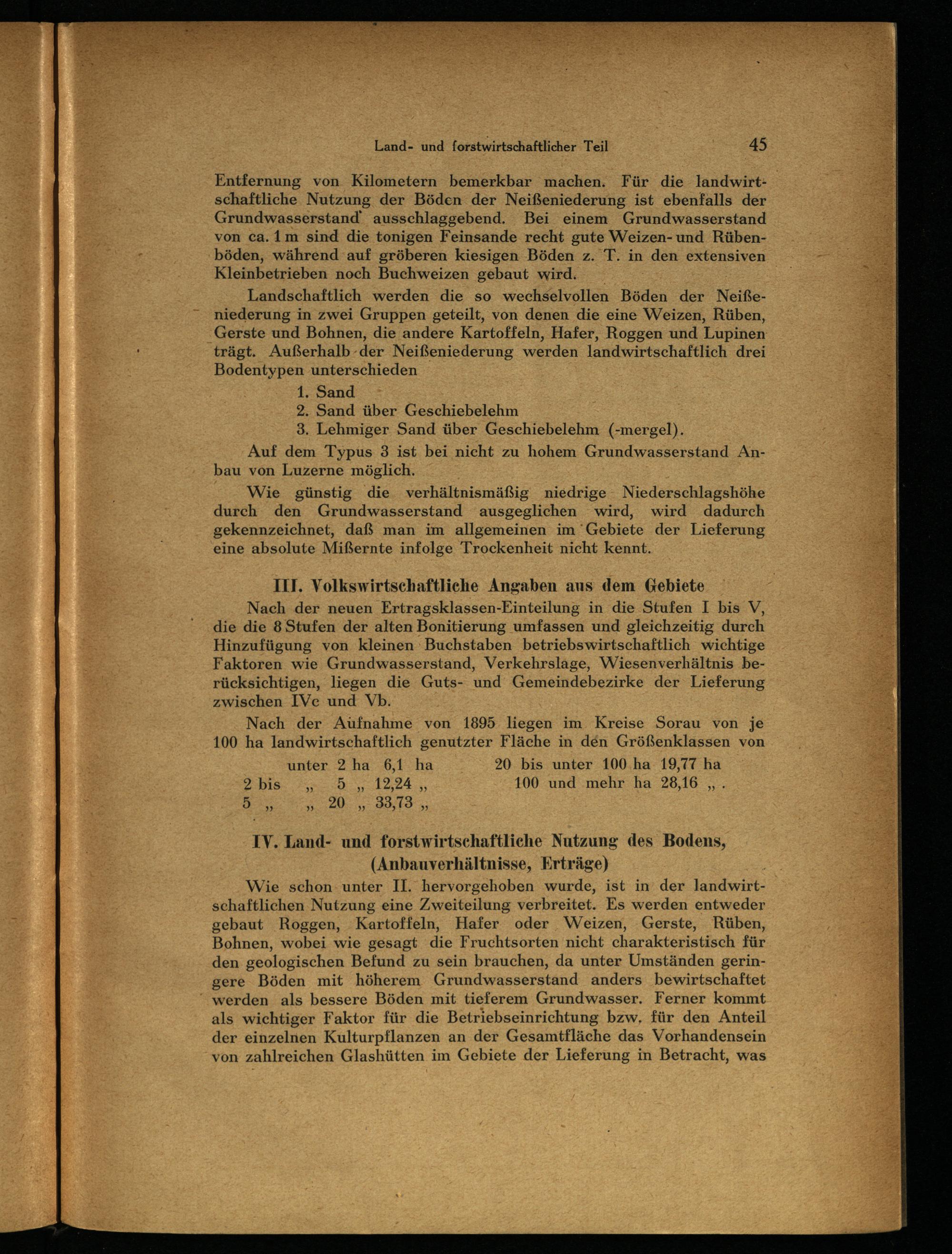 niederung in zwei Gruppen geteilt, von denen die eine Weizen, Rüben, Gerste und Bohnen, die andere Kartoffeln, Hafer, Roggen und Lupinen trägt. Außerhalb der Neißeniederung werden landwirtschaftlich drei Bodentypen unterschieden