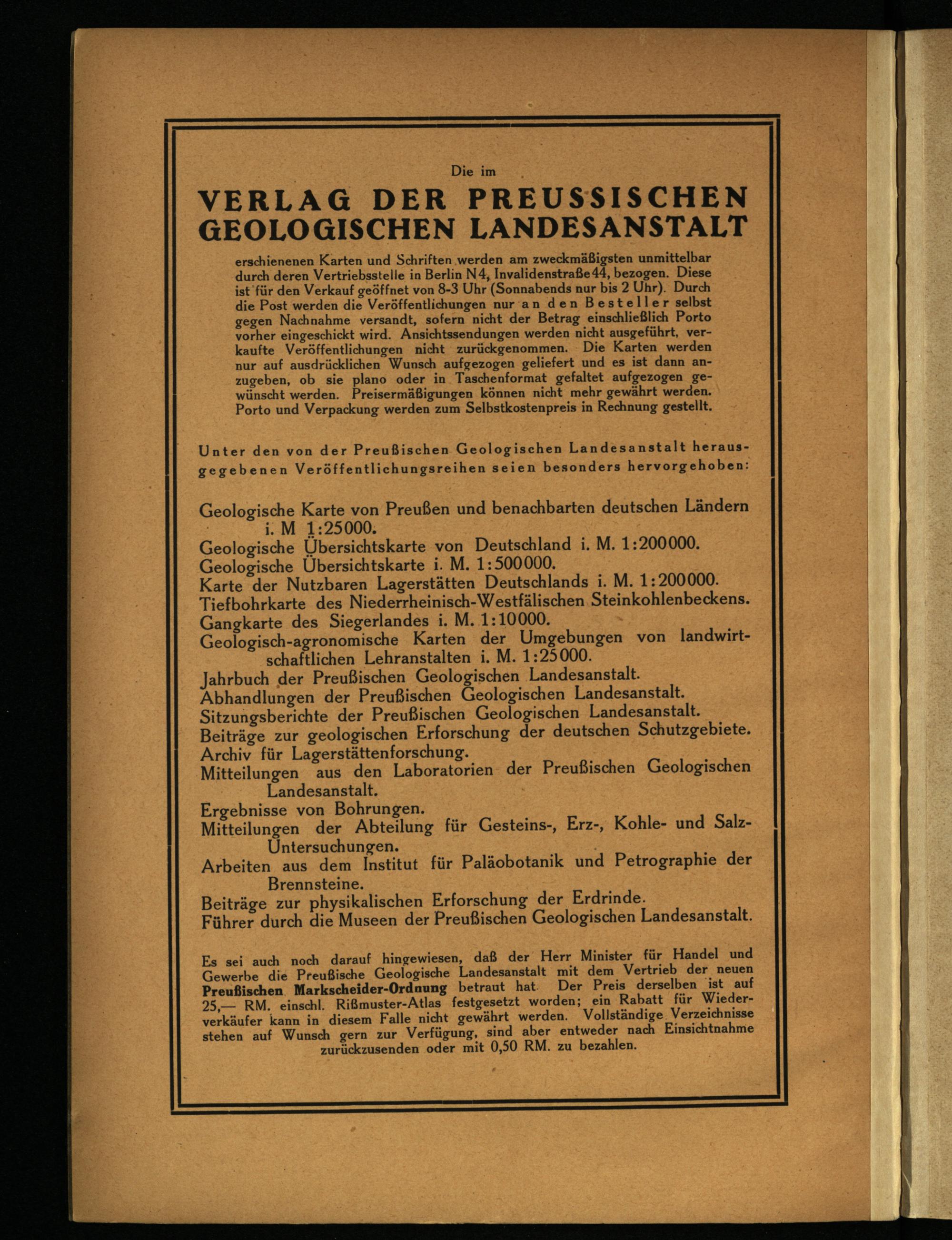 Gewerbe die Preußische Geologische Landesanstalt mit dem Vertrieb der neuen