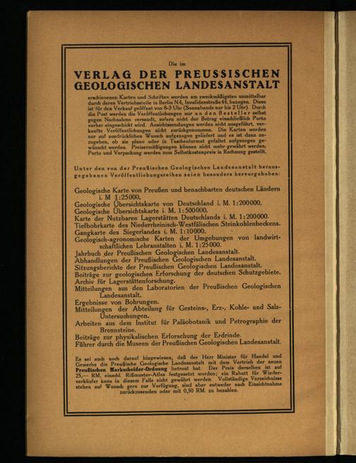 Unter den von der Preußischen Geologischen Landesanstalt herausgegebenen Veröffentlichungsreihen seien besonders hervorgehoben: